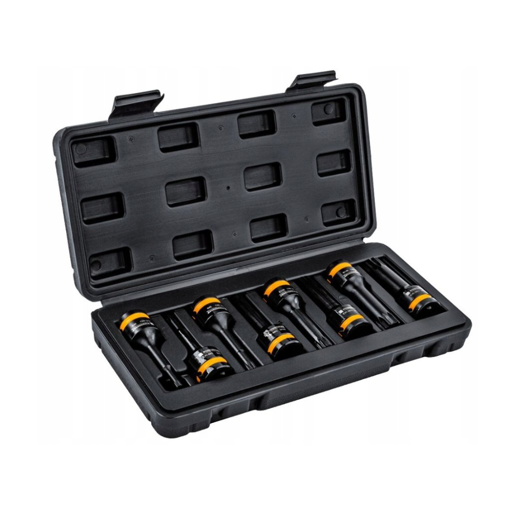 S touto sadou získáte **odolné nástrčné klíče**, které jsou ideální pro použití s rázovými utahováky i ručními nářadími. Vysoká kvalita materiálu a precizní zpracování zajišťují dlouhou životnost, ať už pracujete v dílně, v servisu nebo doma na zahradě u techniky.