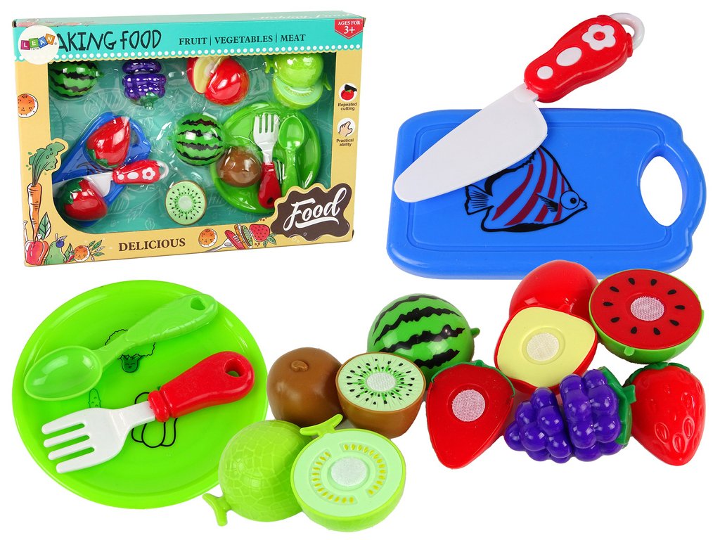 Tento výjimečný set ovoce na krájení nabízí kvalitní plastové ovoce, jako jsou jahody, hrozny, kiwi, meloun, vodní meloun a jablko. Ovoce lze rozdělit a spojit suchým zipem, a přiložený nůž umožňuje jeho bezpečné a kreativní rozříznutí na polovinu, což zlepšuje dovednosti krájení. V sadě najdete také praktické doplňky, jako zelený talířek o průměru 13 cm, modrá krájecí deska (13 cm x 8 cm), zelená lžíce (12 cm) a červeno-bílý vidlička a nůž (13 cm). Všechny prvky jsou pečlivě navrženy s ohledem na bezpečnost a vzdělávací hru. Optimální rozměry atraktivního balení jsou 26 cm x 37 cm x 6 cm. Tento set je nejen příležitostí k rozvoji manuálních schopností, ale také skvělou možností k učení se o rozmanitosti ovoce. Doporučujeme prozkoumat svět ovoce a skvěle se bavit ve virtuální kuchyni!