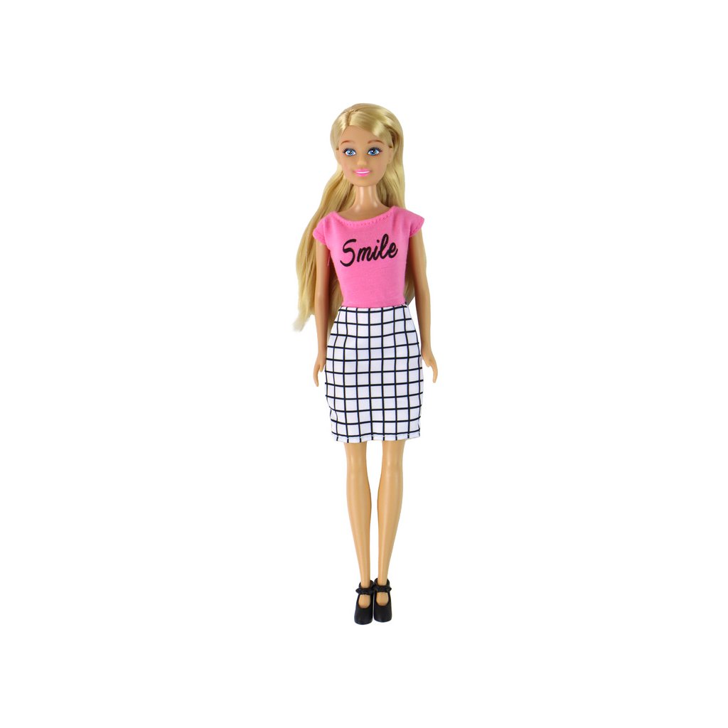 - Stylová panenka s dlouhými blond vlasy a elegantními šaty