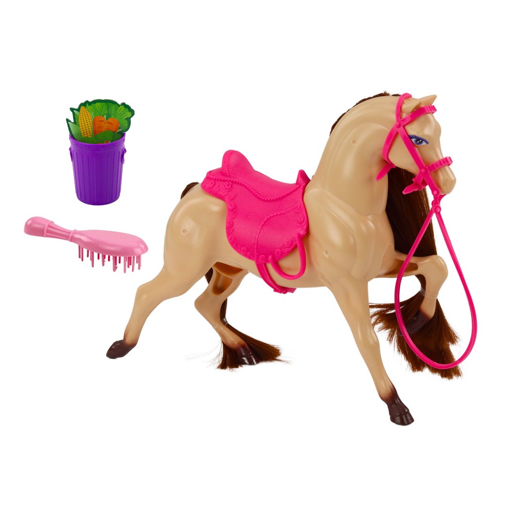 - Připojené jezdecké doplňky jako růžové sedlo a uzda se dají bez obtíží nasazovat a sundavat, což přispívá k realističtější hře