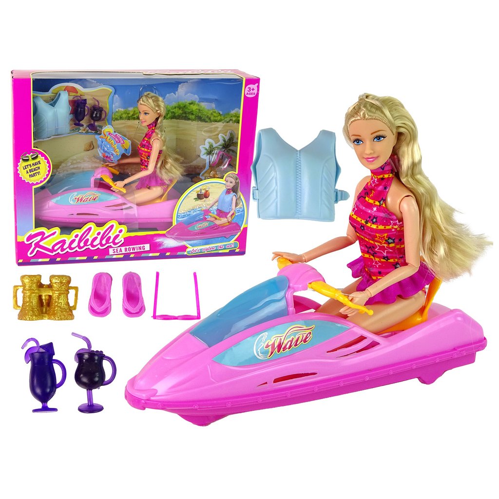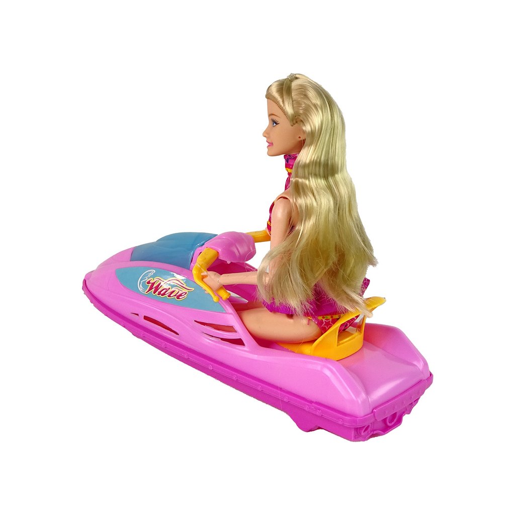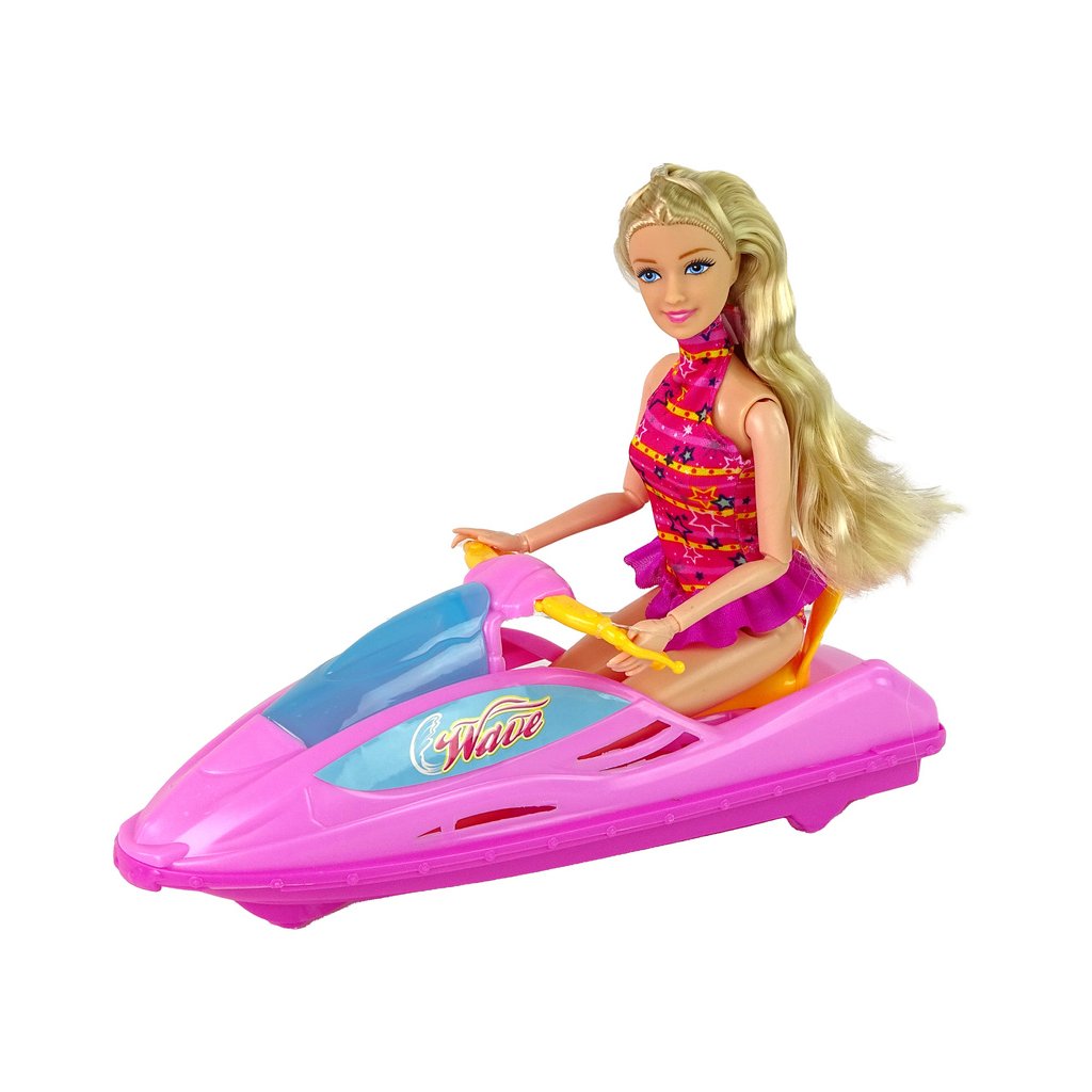 - Tato unikátní hračka nabízí nejen krásný růžový motorový člun, ale i stylovou panenku s dlouhými blond vlasy, která zaujme okamžitě svým šarmem