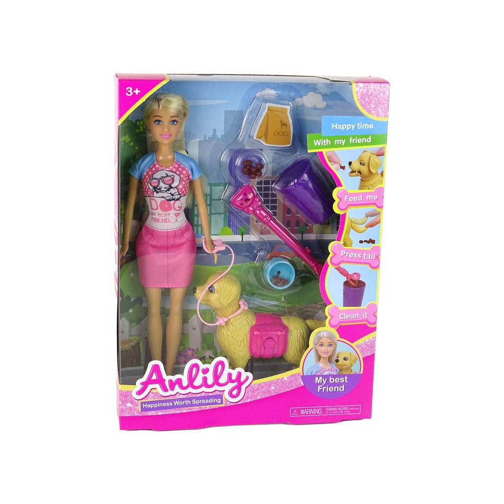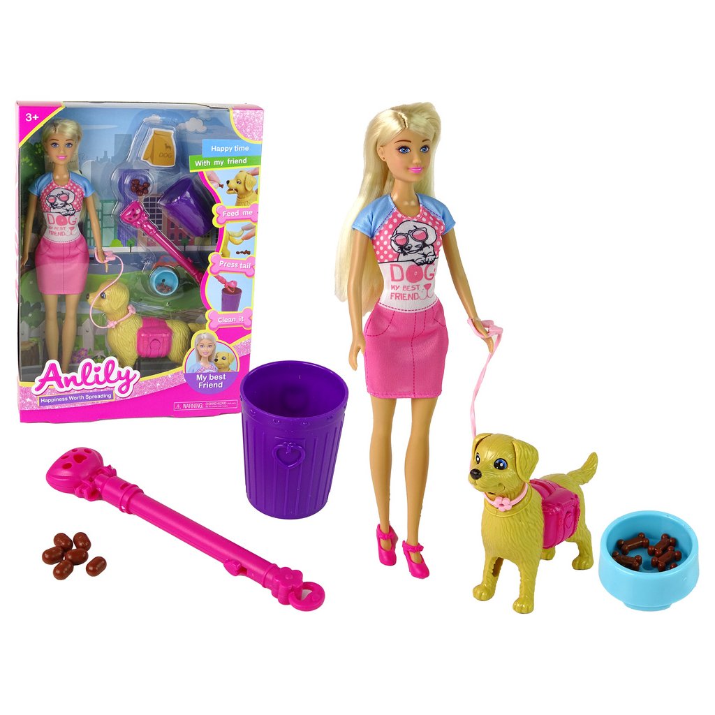Sada panenka se psem a krmivem Prezentovaná sada je ideální volbou pro malé milovnice domácích mazlíčků Hra naučí zodpovědnosti spojené s chovem zvířete v domácnosti a plněním souvisejících povinností, jako je venčení, krmení a úklid