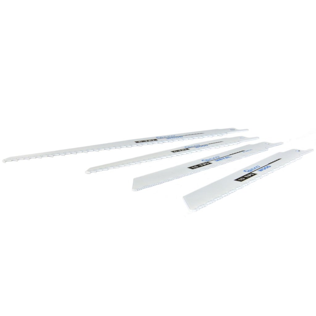 Sada vysoce kvalitních bimetalových pilových listů určených pro pilky. Sada obsahuje čtyři typy pilových listů, celkem 10 ks.