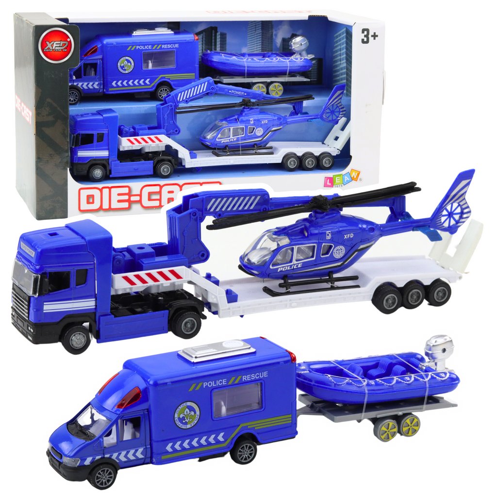 Sada policejních záchranných vozidel s frikčním pohonem je vynikající nabídkou pro děti, které milují dynamické hraní a přebírání role záchranářů Komplet se skládá z různých dopravních prostředků používaných při záchranných akcích