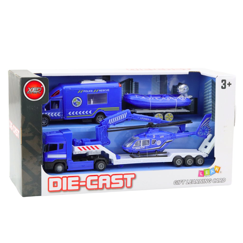nákladního auta s podvalem a vrtulníkem, policejního auta a vozidla s přívěsem a záchrannou lodí Taková rozmanitost umožňuje vytvářet propracované scénáře her, které zaměstnávají dětskou fantazii a kreativitu