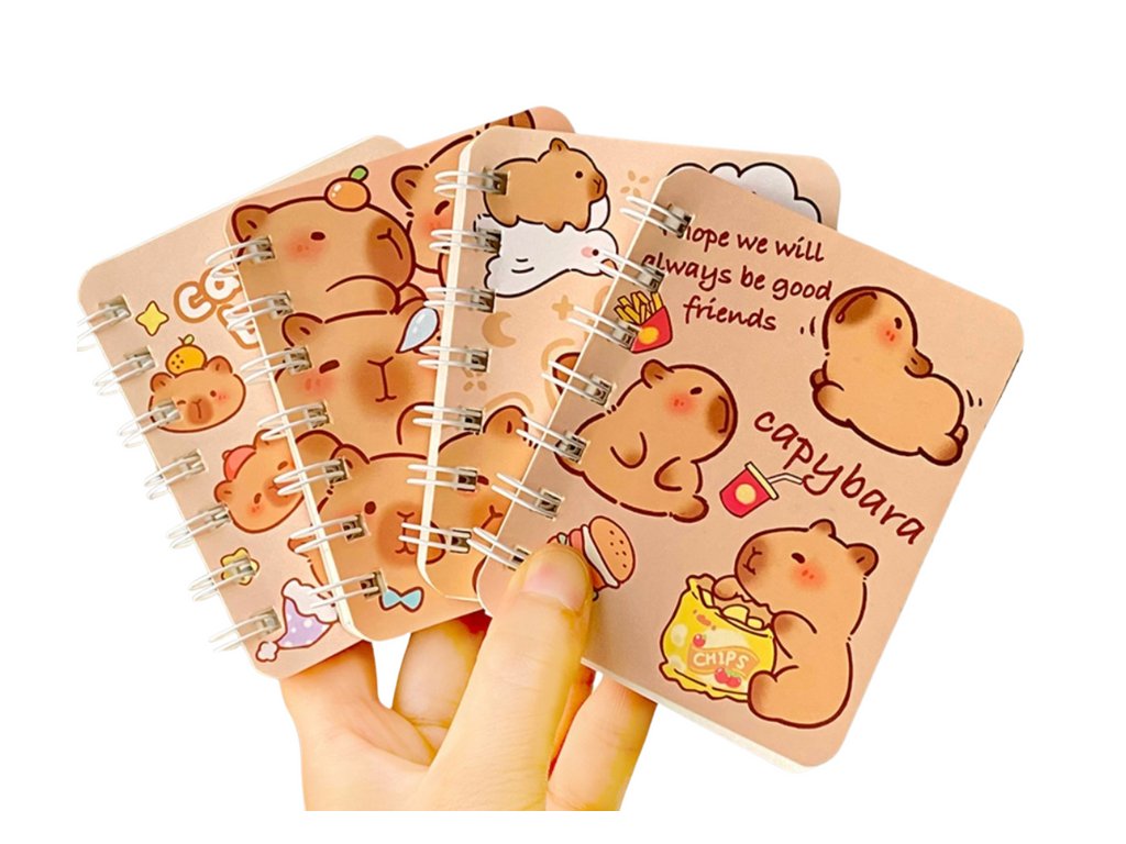 Okouzlující sada zápisníků Kapibara je jedinečná kolekce 4 notýsků, která potěší každého milovníka těchto roztomilých zvířat. Tyto zápisníky ve kompaktním formátu A7 (105 x 82 mm) nejsou jen praktické, ale také se skvěle hodí pro každodenní plánování, psaní poznámek nebo skicování. Každý obsahuje 80 listů s liniemi a jejich měkké, barevné obaly s motivem kapibar upoutají pozornost. Díky malé velikosti se zápisníky snadno vejdou do kabelky, batohu nebo dokonce do kapsy, což je činí ideálními pro cestování, školu, práci nebo setkání.