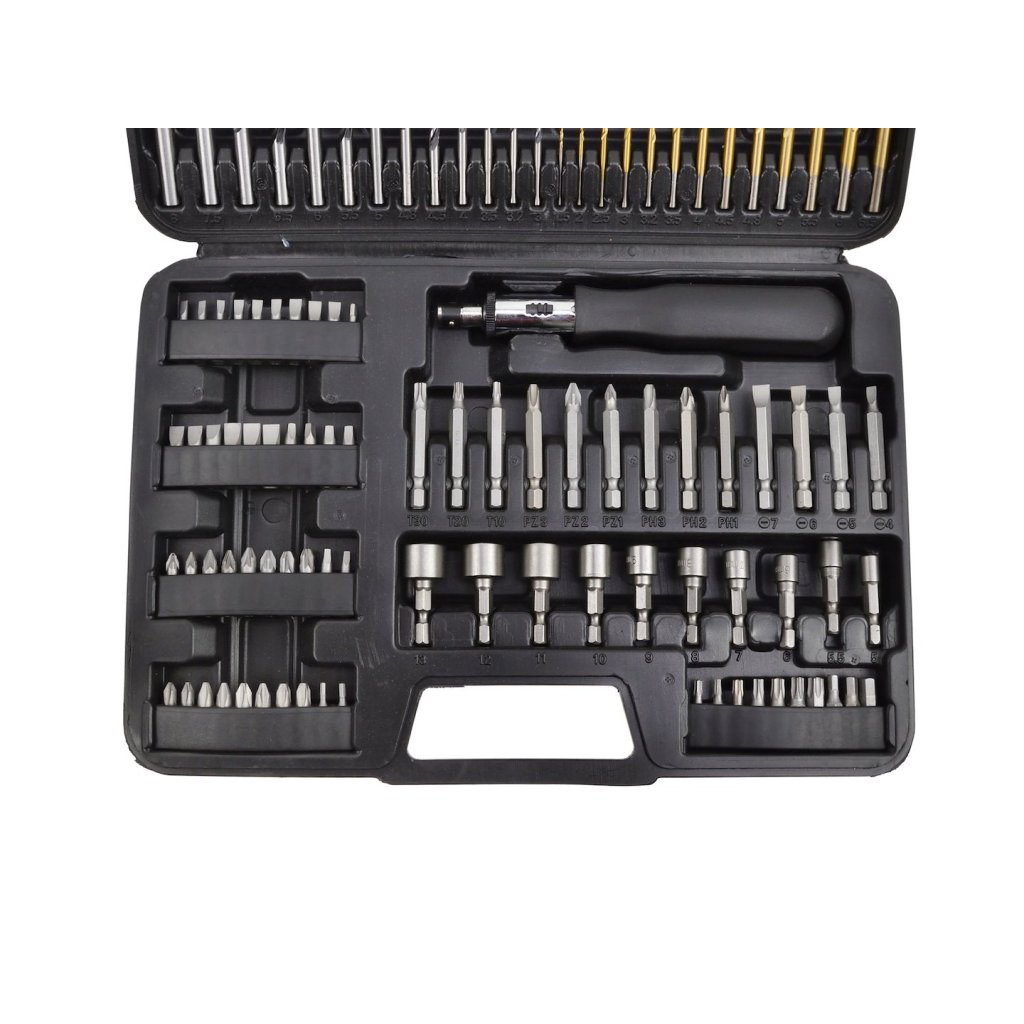 Sada vrtáků, bitů a nástavců, která se skvěle hodí pro každého domácího kutila. Celá sada je uložena v mimořádně praktickém a ergonomickém plastovém kufříku.