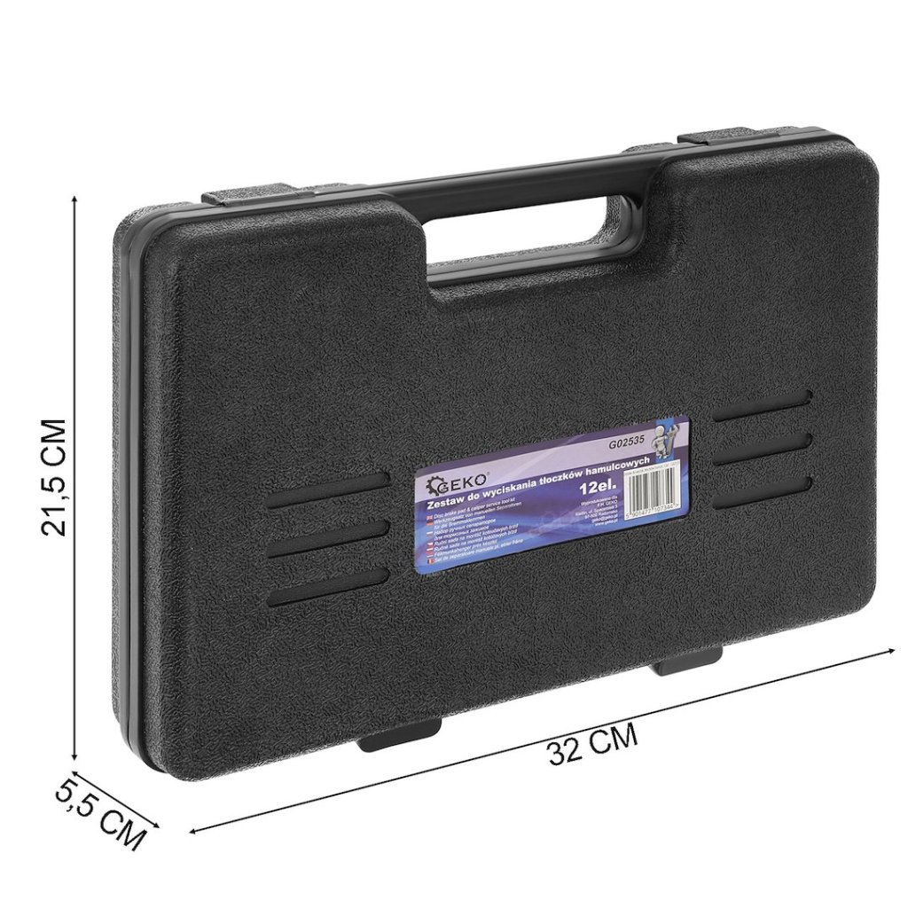 Profesionální 12dílná sada pro vytahování / lisování brzdových pístů, nezbytná při opravách vozidel vybavených kotoučovými brzdami.