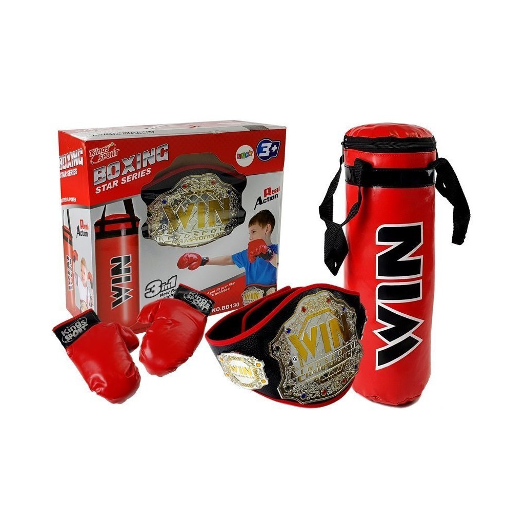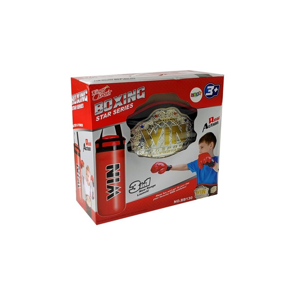 Pokud je vaše dítě nadšené pro sport, zvláště pro boxerské zápasy, není na co čekat. Skvělým dárkem bude náš boxerský set. Silný trénink a nezapomenutelná zábava jsou výborným způsobem, jak se zbavit přebytečné energie. To zlepší u dítěte koordinaci pohybů, rychlost, obratnost a naučí se vyhýbat úderům. Set je ve klasické černo-červené barevné kombinaci. Je zpracován s nejmenšími detaily, což v kombinaci s materiály nejvyšší kvality činí hračku velmi pevnou a odolnou. Rukavice v setu perfektně ladí, a pás se zlatými prvky a barevnými kamínky obdrží vítěz po úspěšném tréninku nebo veselém zápasu.