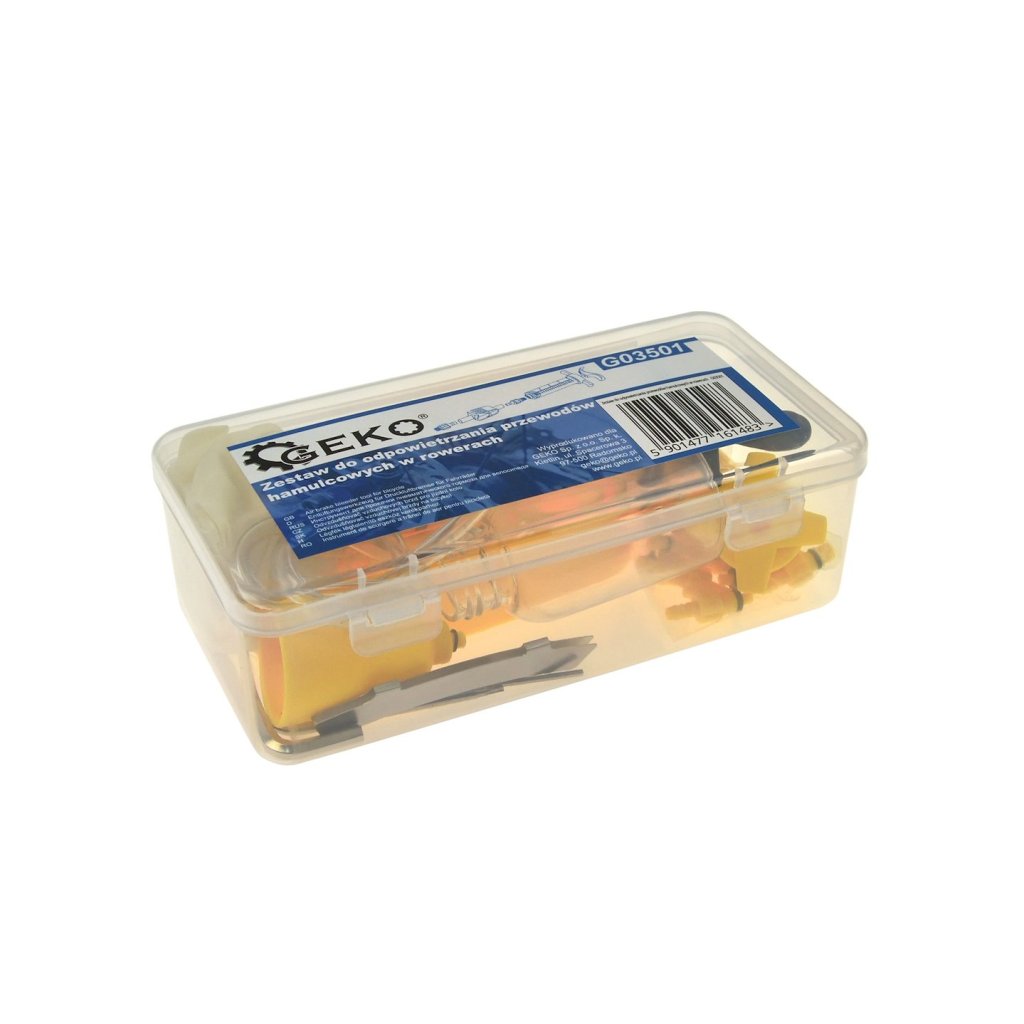 Sada pro odvzdušnění hydraulických brzdových systémů používaných na jízdních kolech. Umožňuje odvzdušnění brzdových systémů značek jako: AVID, BENGAL, KLS, FORMULA, GIANT MPH, HOPE, HAYES, MAGURA, PROMAX, ROCKSHOX, SHIMANO, TEKTRO.