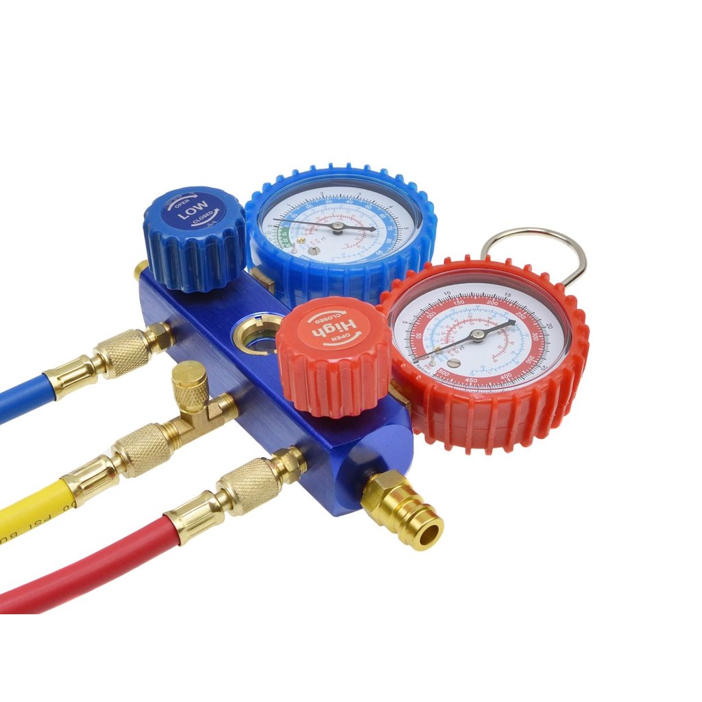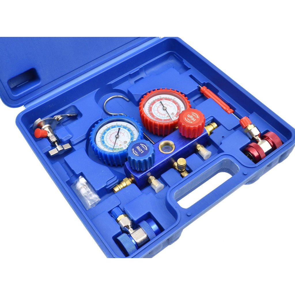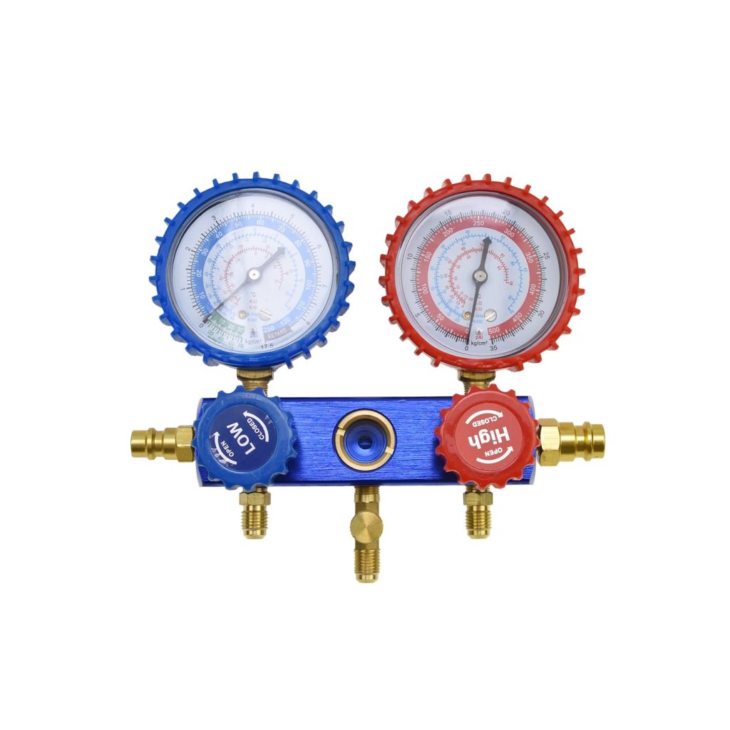 Oba ukazatele vysokého a nízkého tlaku lze nastavit na nulu. Stupnice rozbočovače jsou označeny v teplotních a tlakových stupních. Vyměnitelné pístové ventily zajišťují dokonalé utěsnění, měřidla naplněná glycerinovým olejem jsou vybavena ventilem pro uvolnění bezpečnostního tlaku v případě nárůstu tlaku.