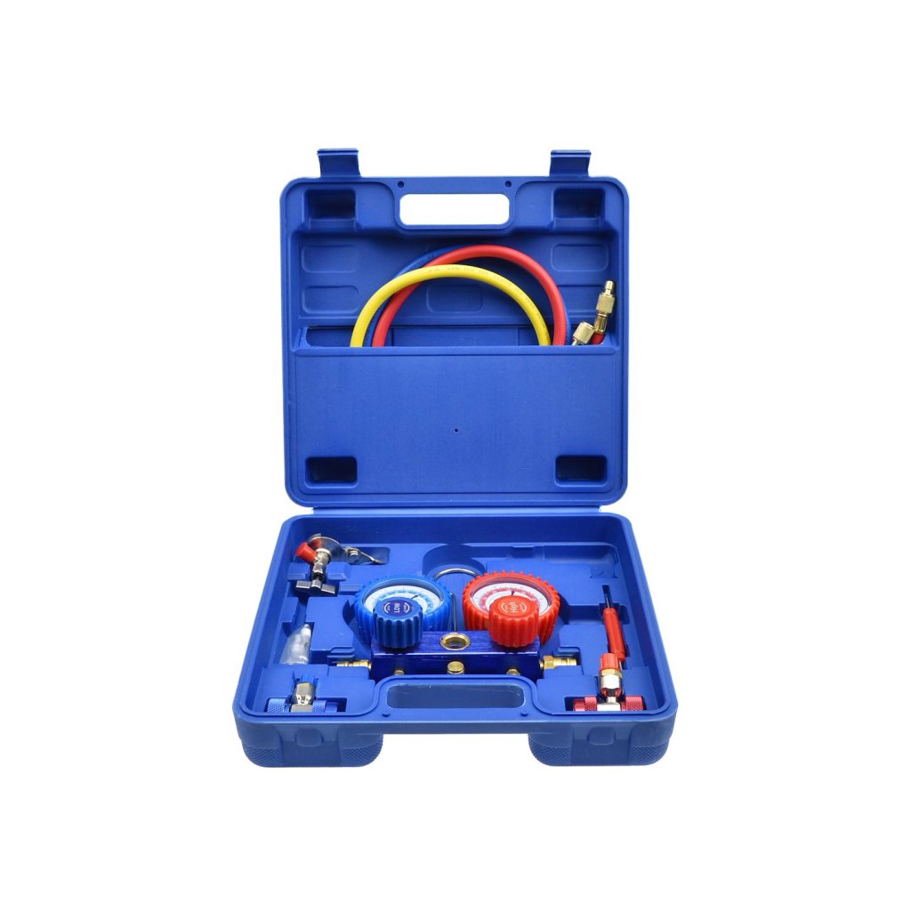 - Dva manometry se stupnicí pro chladiva: R12, R22, R134a, R502