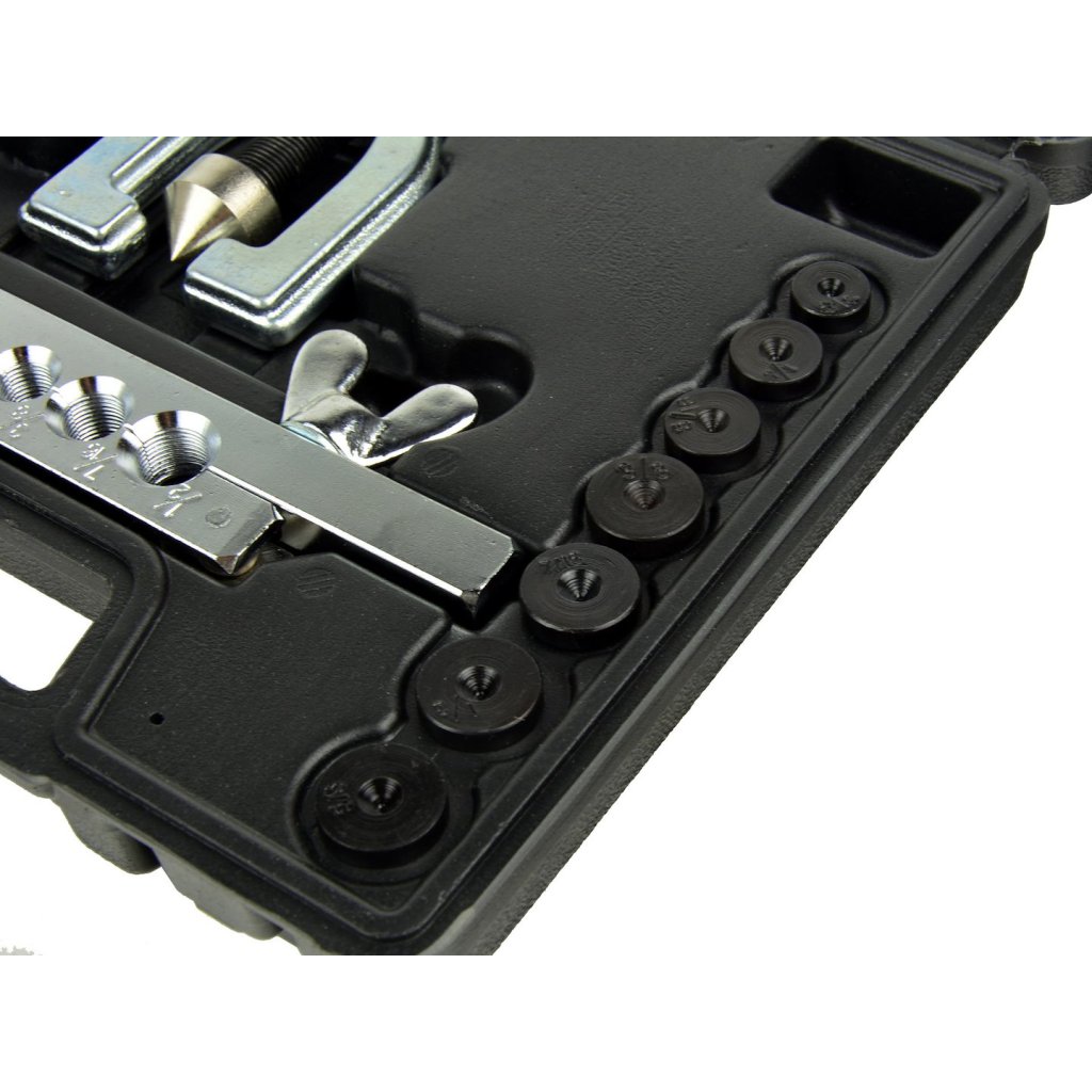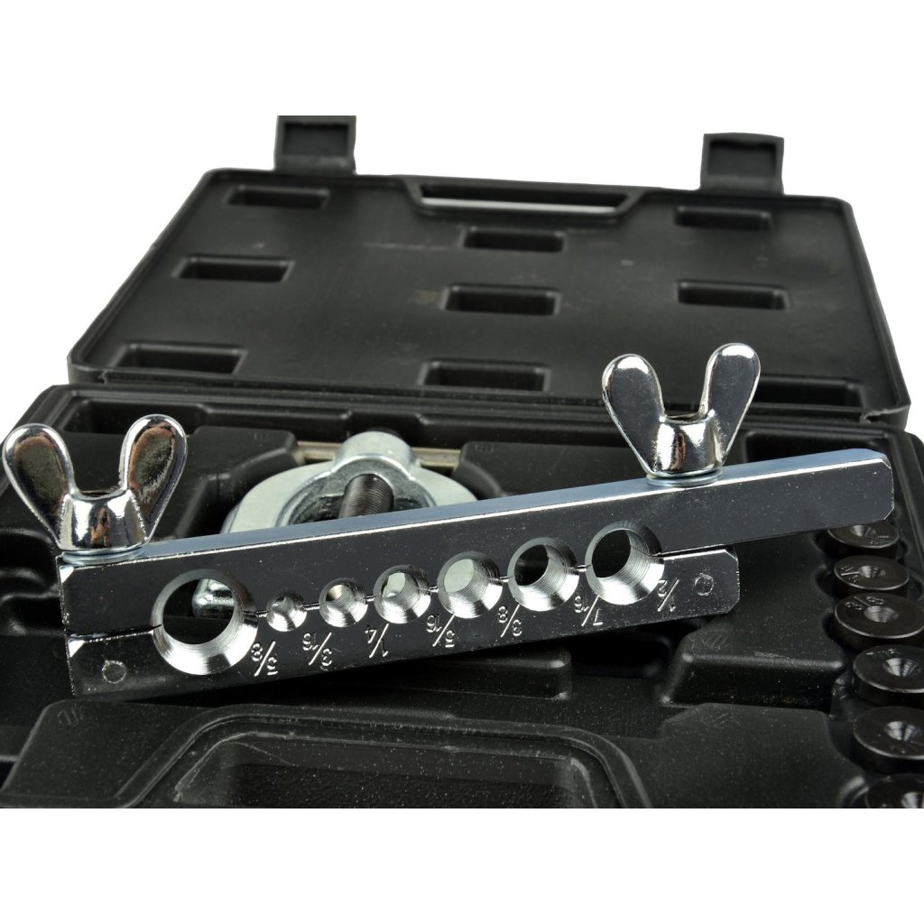 - 7 adaptérů pro rozšiřování trubek a hadic: 3/16", 1/4", 5/16", 3/8", 7/16", 1/2" a 5/8"