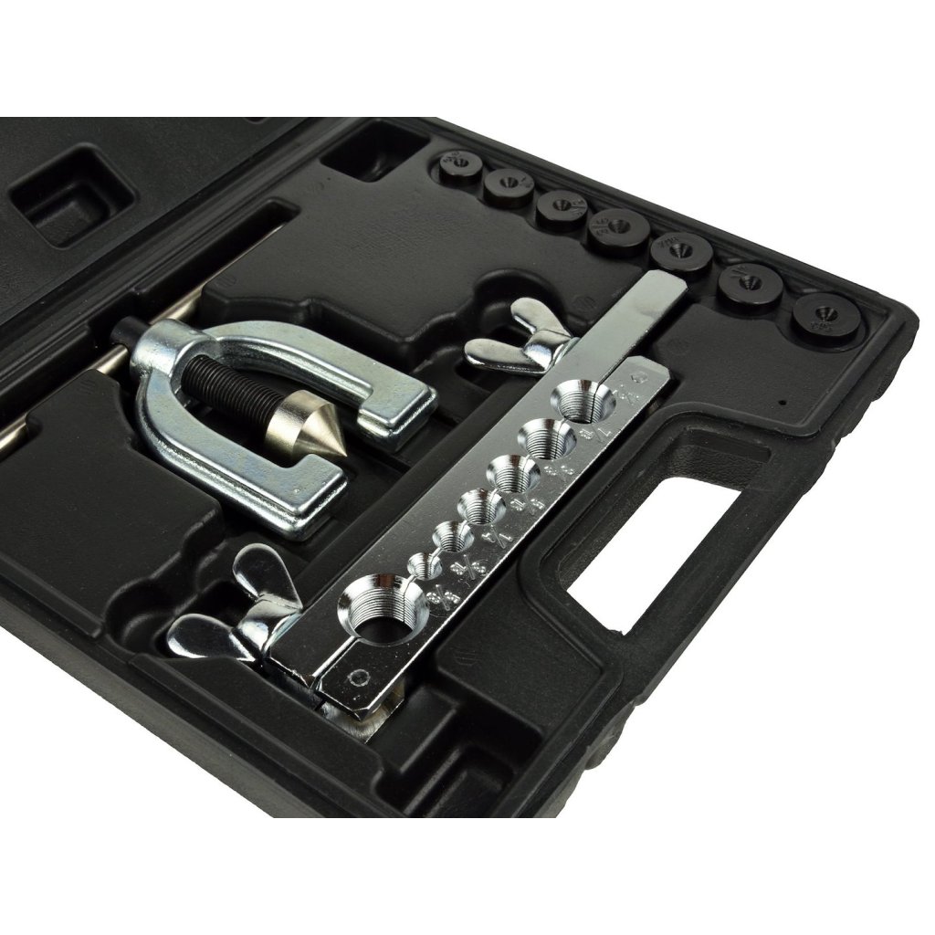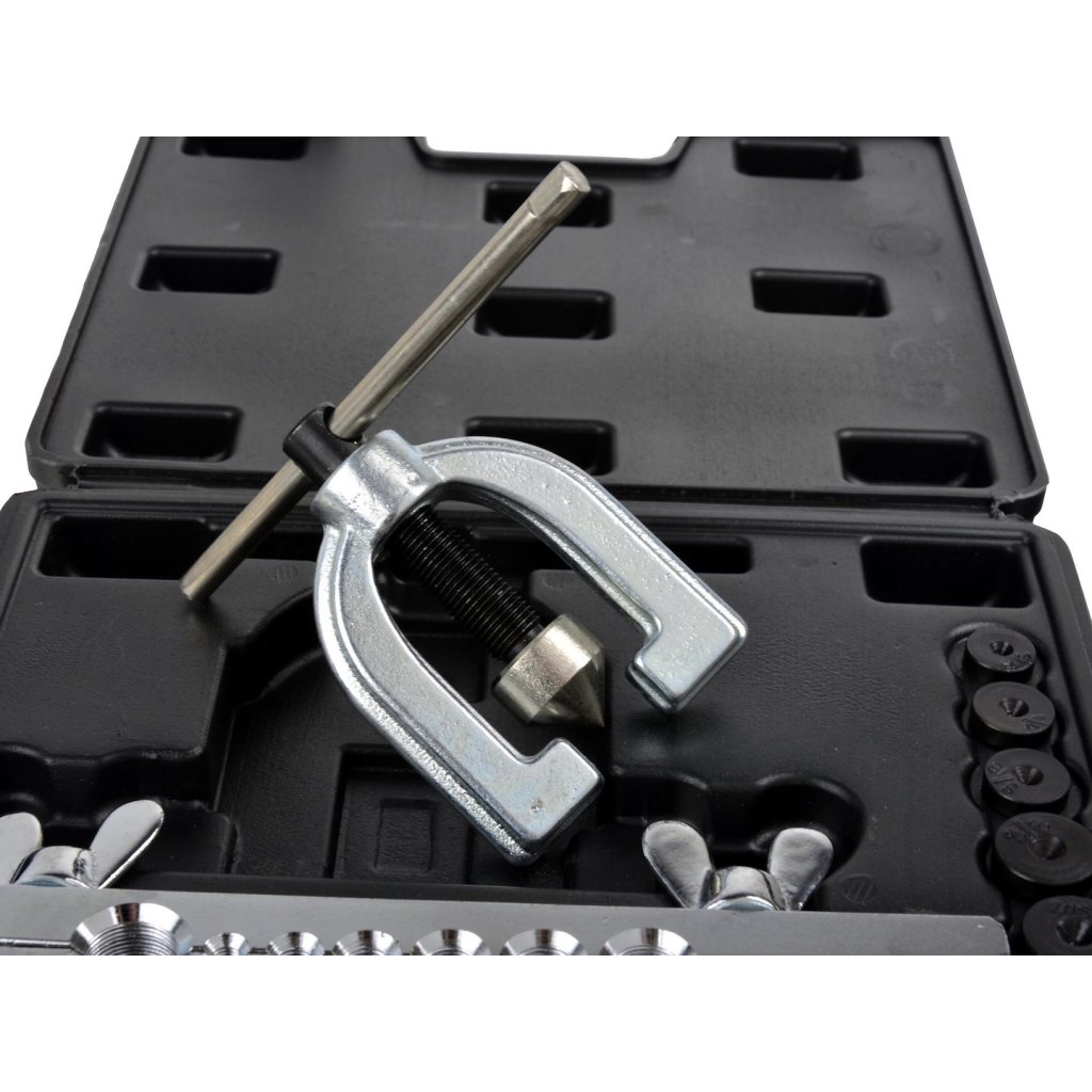 Sada pro zpracování brzdových a palivových hadic. Vhodná pro řezání a rozšiřování měděných, mosazných a hliníkových trubek a hadic o tloušťce stěny do 1 mm.