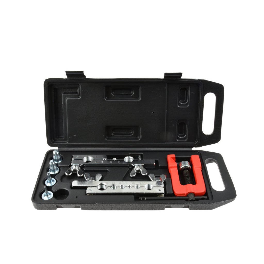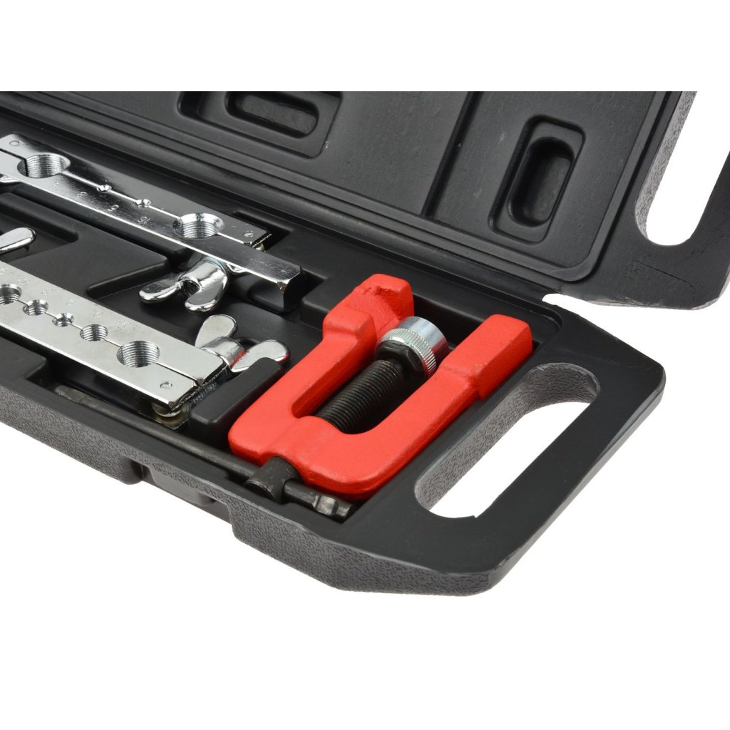 Sada pro zpracování brzdových a palivových hadic. Vhodná pro řezání a rozšiřování měděných, mosazných a hliníkových trubek a hadic o tloušťce stěny do 1 mm.