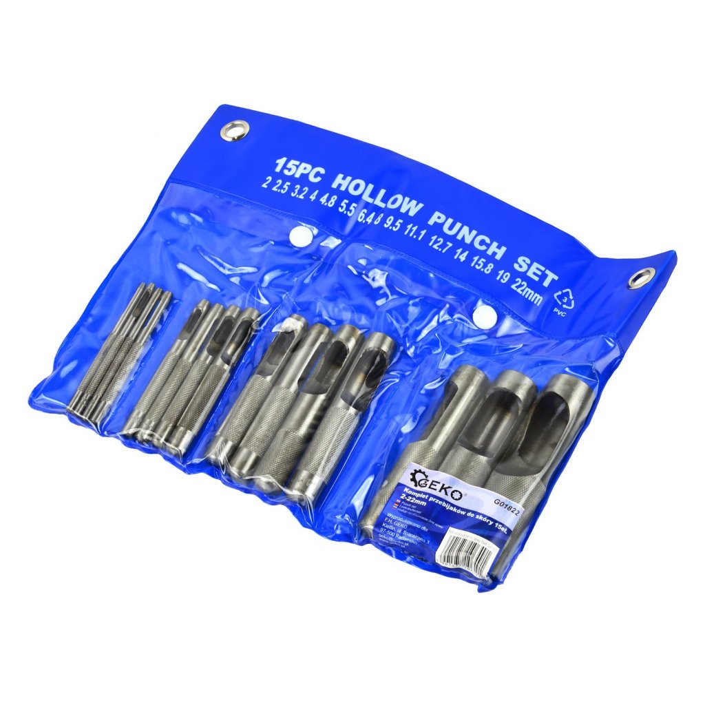 - sada obsahuje 15 děrovačů ve velikostech 2–22 mm