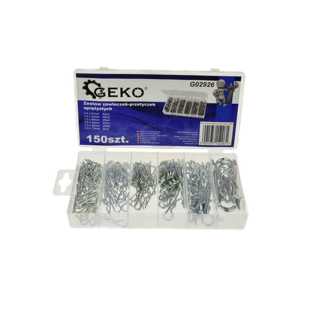 Univerzální sada závlaček – pružných kolíků. Užitečná jak v profesionálním servisu, tak v domácí garáži.