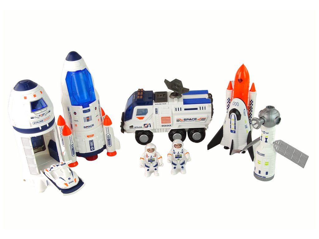 - Obsah sady: Dva vesmírné lodě, kosmická raketa, náklaďák, vozdlo, satelit, dvě figurky astronautů