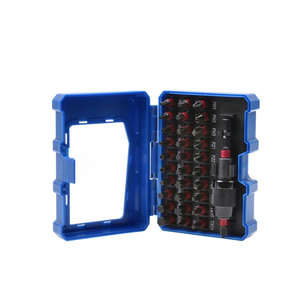 - 12 bitů Torx 25 mm: TX10 (x2), TX15 (x2), TX20 (x3), TX25 (x2), TX30 (x2), TX40