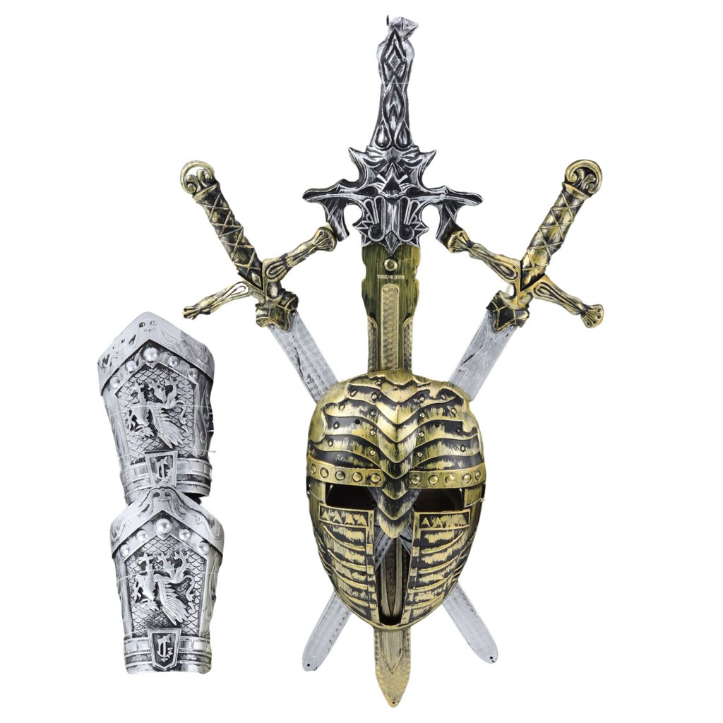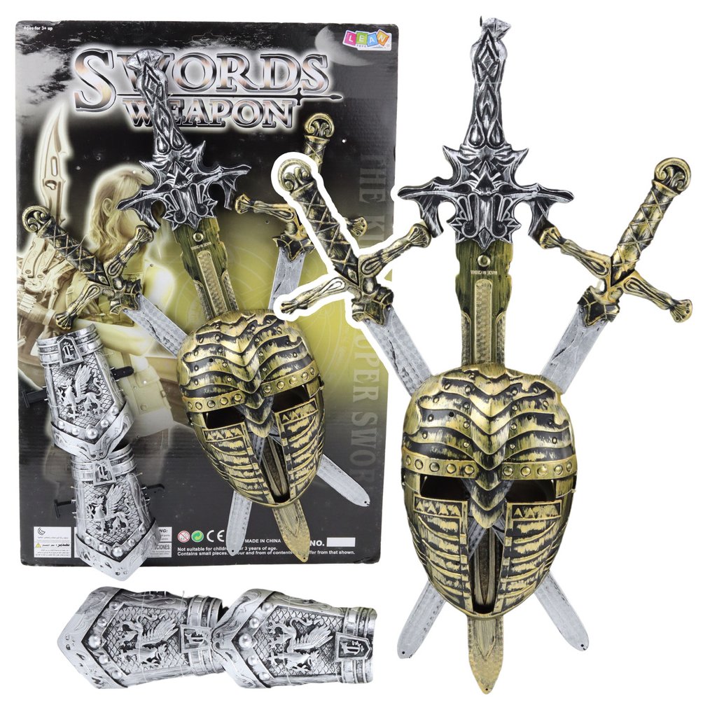 Sada rytířská s maskou, třemi meči a chrániči Sada rytířská je určená pro děti, které sní o tom stát se odvážným válečníkem, ukrytým za stylizovanou maskou.