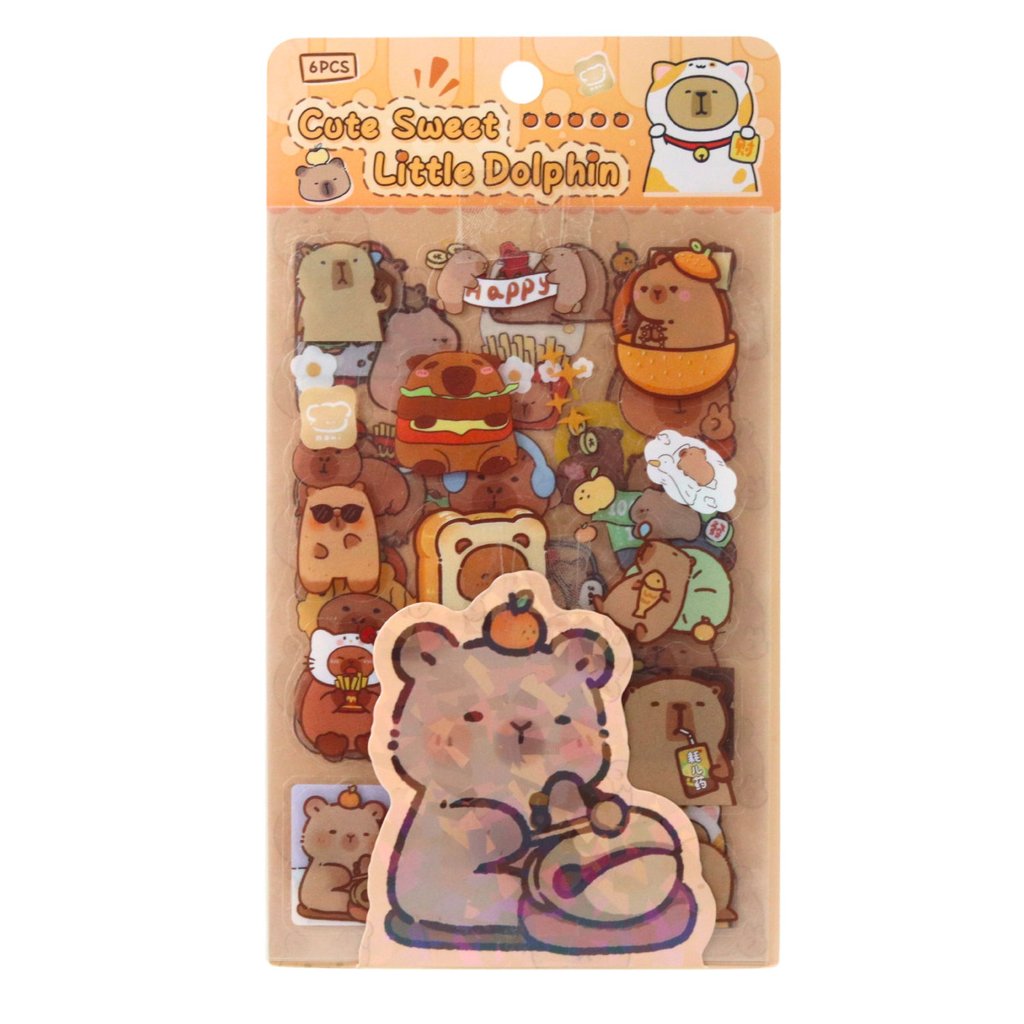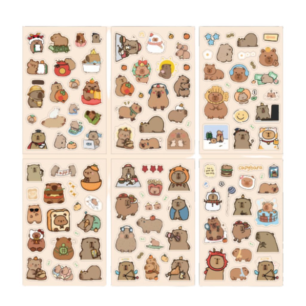 Sada Samolepek Kapybara obsahuje 6 blistrů s přibližně 110 samolepkami, které jsou ideální pro všechny milovníky roztomilých papírových dekorací.