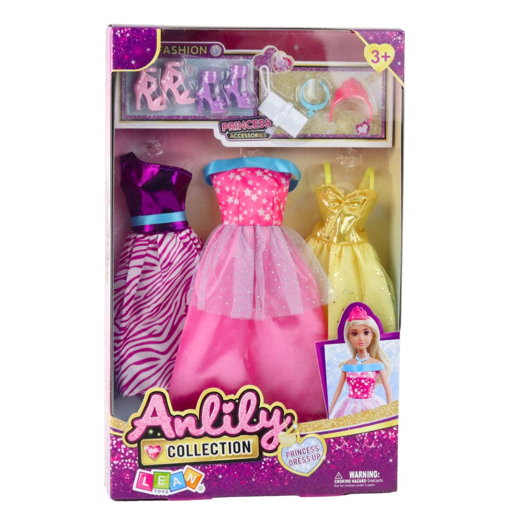 Sada Šatů pro Panenky Anlili Boty Kabelka Koruny Doplňky 8 ks