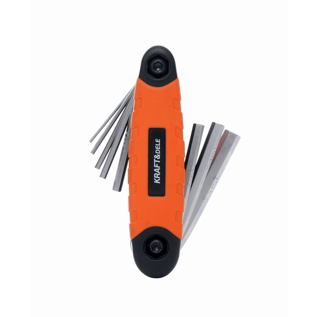 Pokud hledáte perfektní nástroj pro různé drobné opravy, je tu SADA SKLÁDACÍCH IMBUSOVÝCH KLÍČŮ od Kraft&Dele. Tento set z kvalitní CRV oceli zaručuje nejen odolnost, ale i pohodlí díky protiskluzové rukojeti. Ještě důležitější je však jeho kompaktnost – vejde se do kapsy! Mějte své nepostradatelné nářadí stále při sobě. Neváhejte!