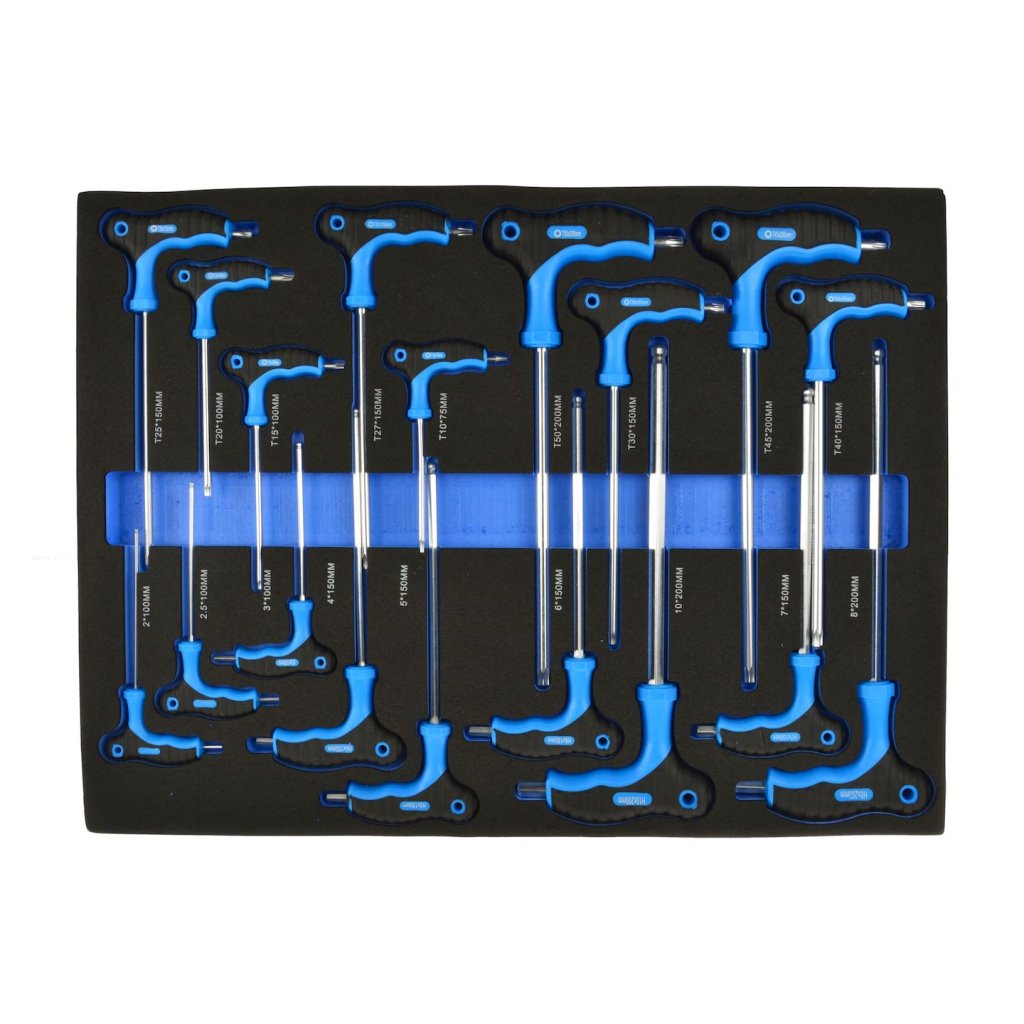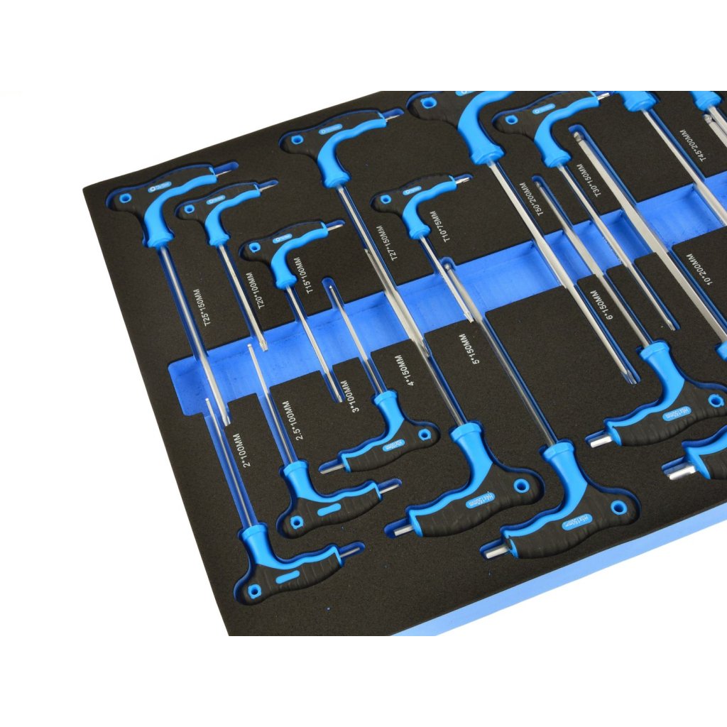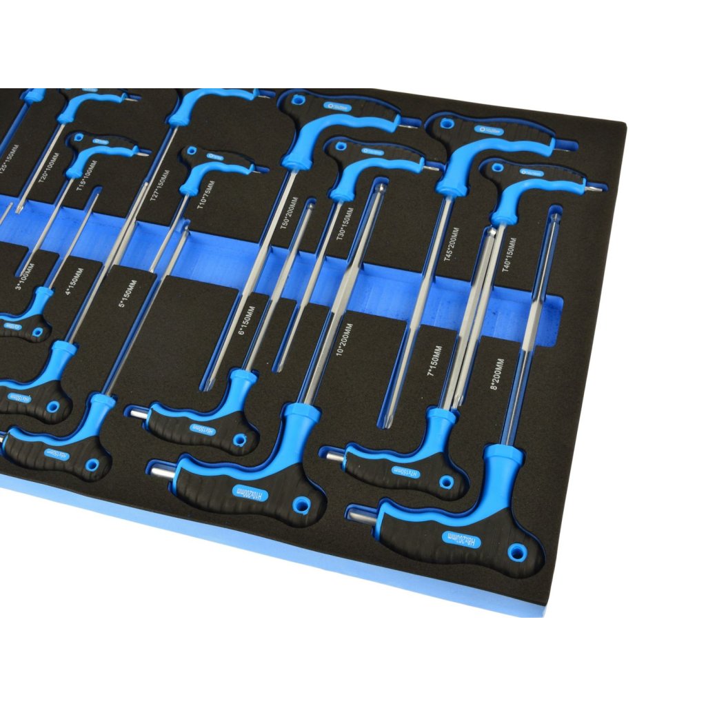 Obsah balení: Klíč Torx typu T T10x75, T15x100, T20x100, T25x150, T27x150, T30x150, T40x150, T45x200, T50x200 mm Šestihranný klíč typu T H2x100, H2,5x100, H3x100, H4x150, H5x150, H6x150, H7x150, H8x20