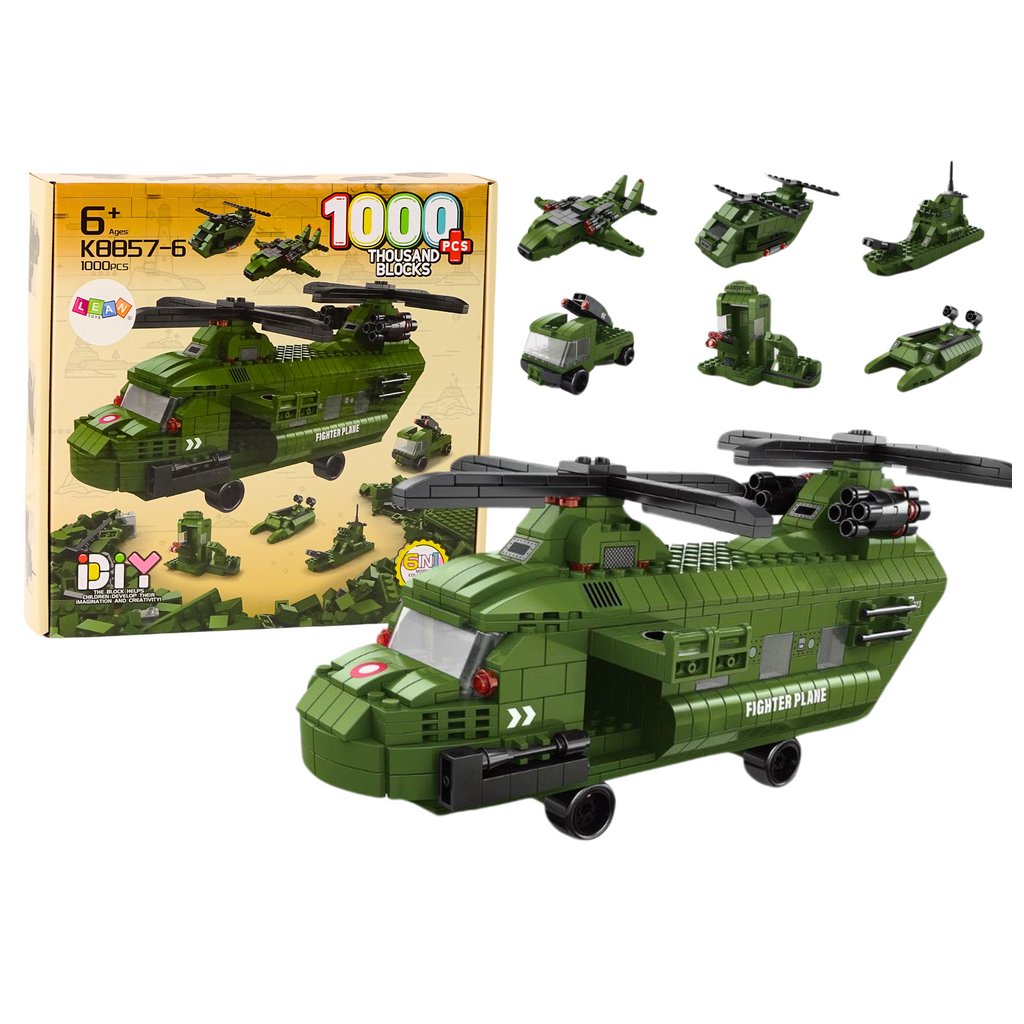 - Potěšte své dítě možností vytvořit nejen vrtulník, ale i dalších šest menších vojenských strojů, jako jsou loď, stíhač a katapult