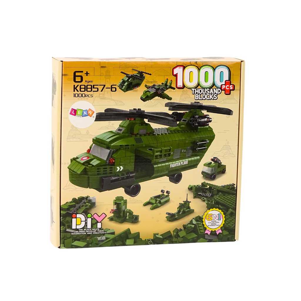 Sada Stavebnic Vojenský Zelený Vrtulník 1000 Ks