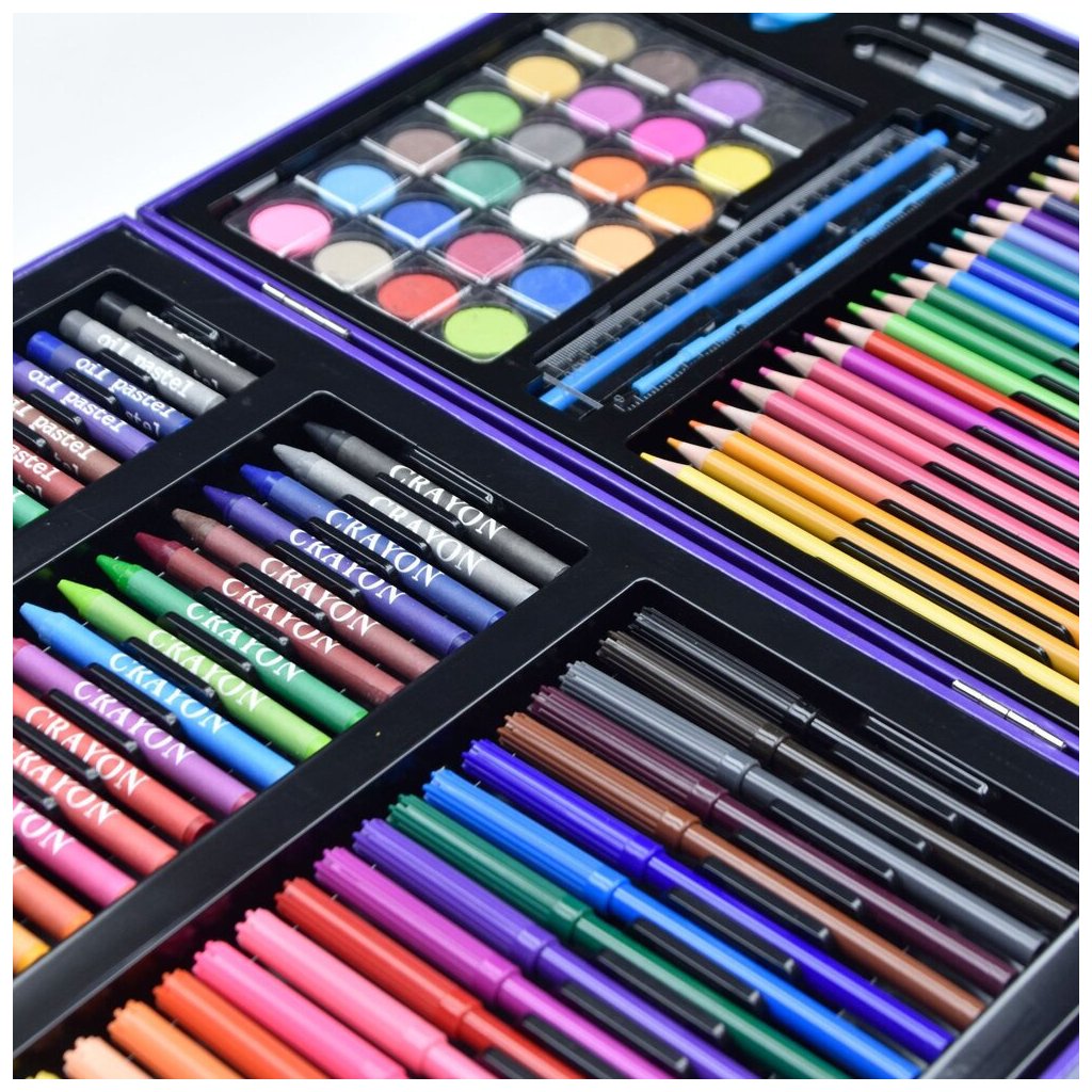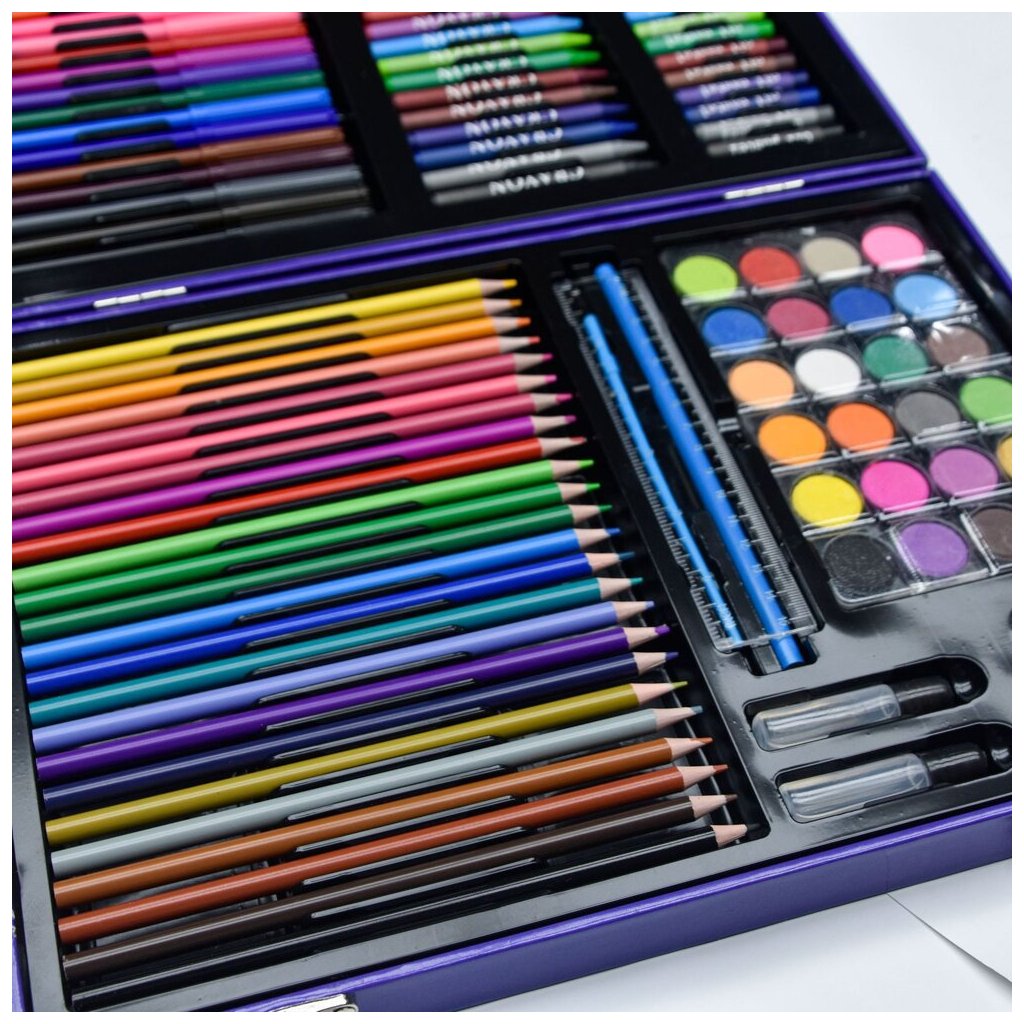 Uvnitř kufříku objevíte širokou škálu uměleckých nástrojů, díky nimž mohou vaše děti vyjádřit svou kreativitu v různých výtvarných technikách. Sada obsahuje: