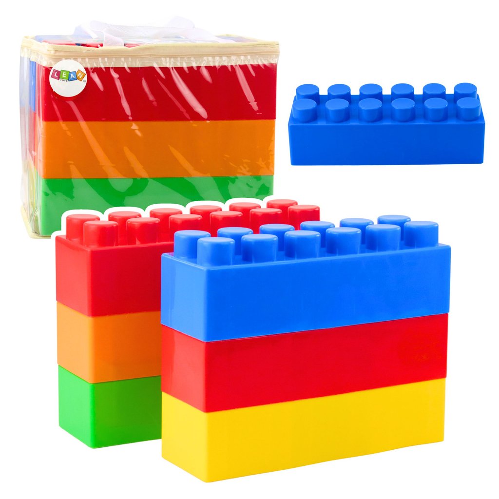 Zeset velkých barevných konstrukčních kostek v tašce – 6 kusů Sada barevných podlouhlých kostek je vynikající volbou pro nejmladší konstruktéry.