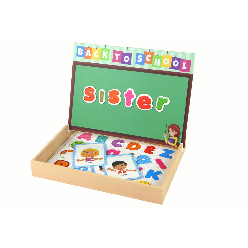 V krabici najdete sadu písmen, ze kterých může dítě skládat první slova a věty Je to skvělý způsob, jak rozvíjet dovednosti psaní a čtení