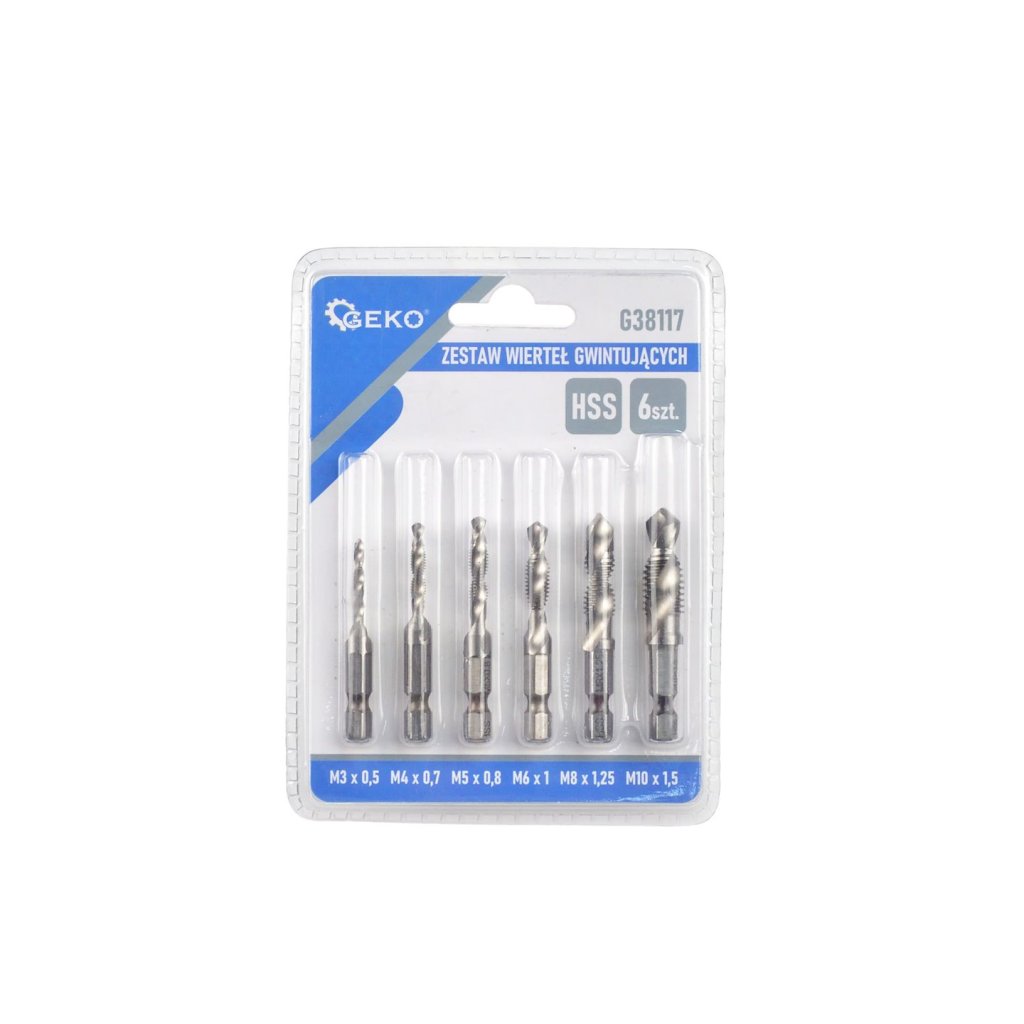 Sada závitových vrtáků vyrobených z rychlořezné oceli HSS. Sada umožňuje provést otvor a okamžitě jej zašroubovat, což výrazně zefektivňuje práci a zkracuje čas potřebný k jejímu provedení. Závitové vrtáky umožňují provádět závitové otvory ve velikostech M3-M10.