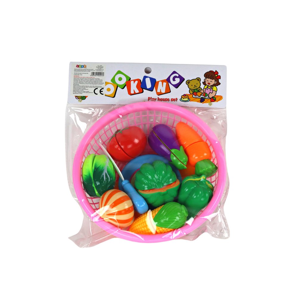 Košík obsahuje osm realisticky ztvárněných druhů zeleniny, které lze díky suchým zipům „rozříznout“ na polovinu. Sada obsahuje mrkev, rajče, cibuli, zelenou papriku, kukuřici, batát, salát a zelenou dýni. Každou zeleninu lze opakovaně rozdělovat a spojovat, což činí hru dynamickou a poutavou.