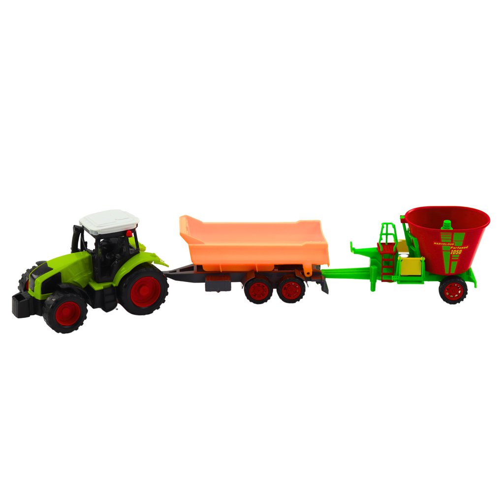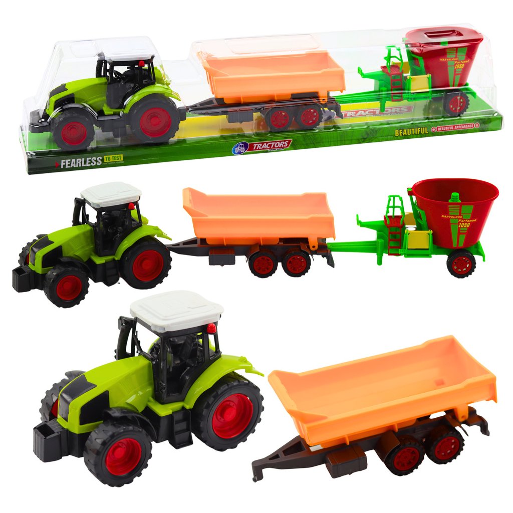 Sada Zemědělský Traktor s Kippením Vlekem a Krmným Vozem