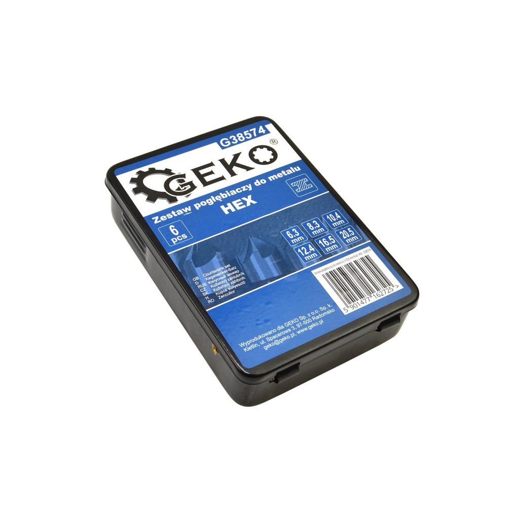 Sada kuželových zahlubovačů do kovu. Zahlubovače mají břity v úhlu 90°, jsou vyrobeny z rychlořezné oceli HSS. Určené k zvětšování otvorů a také ke zkosení hran již vyvrtaných otvorů. Vybaveny úchytem HEX 1/4”.