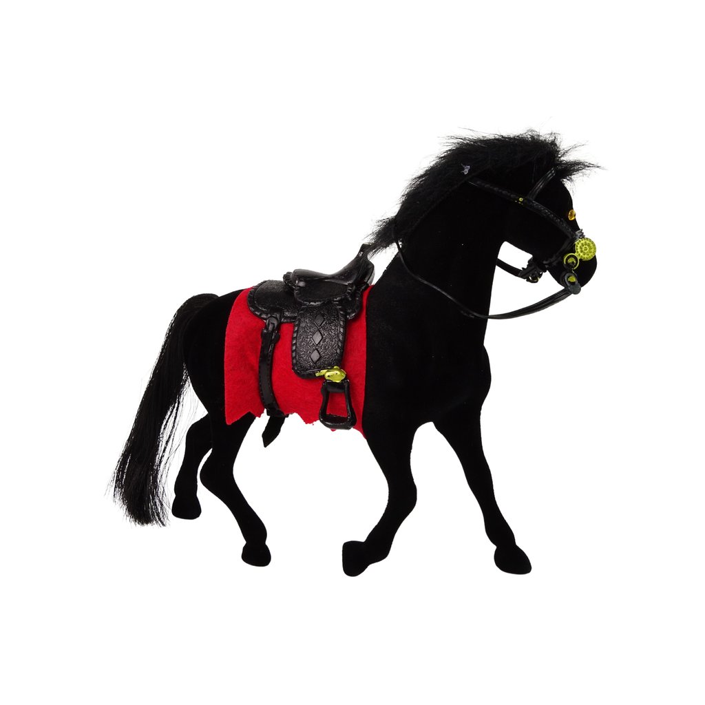 Sametová figurka Černý kůň s červeným sedlem Sametová figurka je vyrobena z vysoce kvalitního materiálu příjemného na dotek.