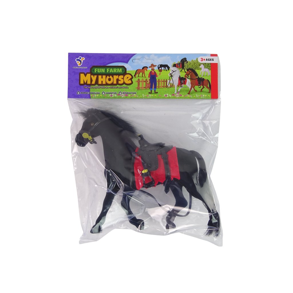 Sada obsahuje figurku černého koně s černým sedlem a červenou čepičkou, která se skvěle hodí jako doplněk sbírky zvířátek malých sběratelů Figurka umožní dětem vytvořit si vlastní farmu ve svém pokoji