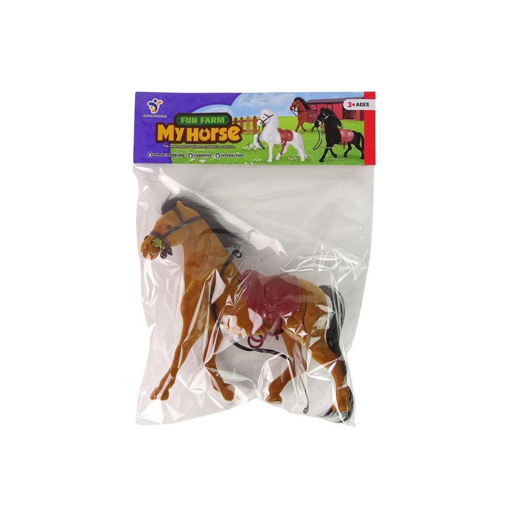 Sada obsahuje figurku hnědého koně s červeným sedlem, který je na dotek sametový, díky čemuž se skvěle hodí jako doplněk sbírky zvířátek malých sběratelů Figurka umožní dětem vytvořit si ve svém pokoji vlastní farmu