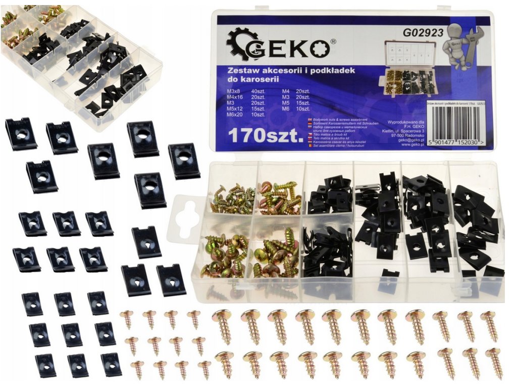Samořezné šrouby a pružné matice pro karosérie 170ks