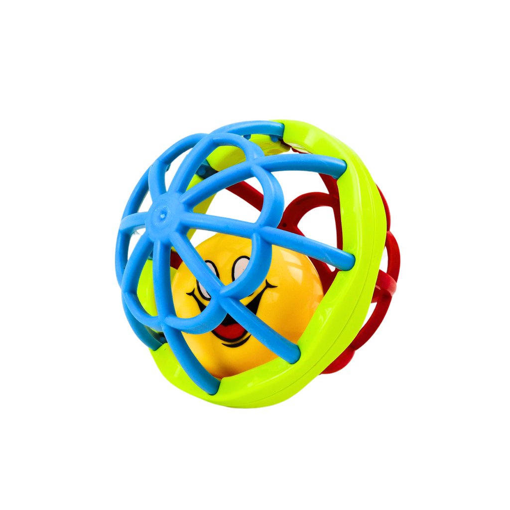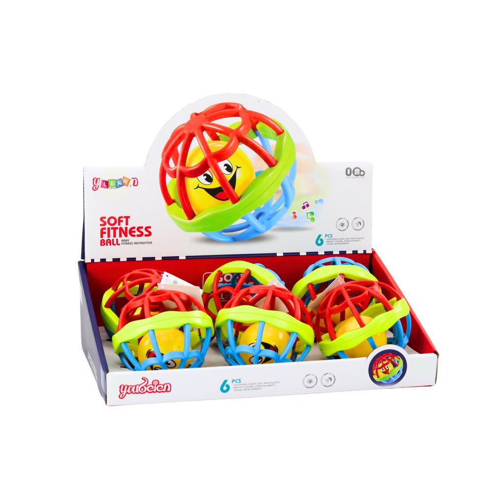 Uvnitř míčku se nachází žlutá plastová kulička, která při zatřesení vydává jemný zvuk chrastítka, vzbuzuje zvědavost dítěte a povzbuzuje je k interakci. Lehká konstrukce a ergonomický tvar zajišťují, že míček ideálně padne do malých rukou, což umožňuje snadné uchopení a manipulaci.