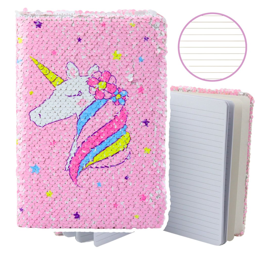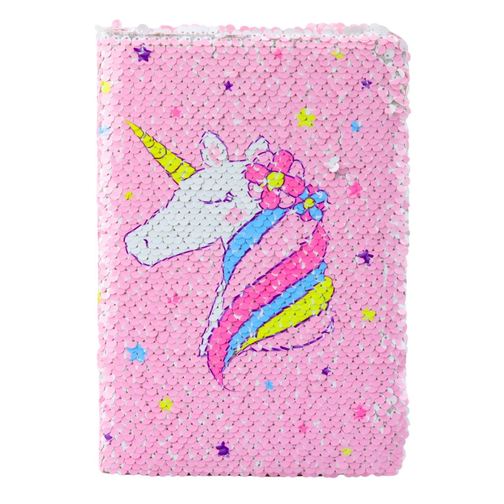 - Objevte svět magie a kreativního vyjádření s naším poznámkovým blokem s flitry a jednorožcem
