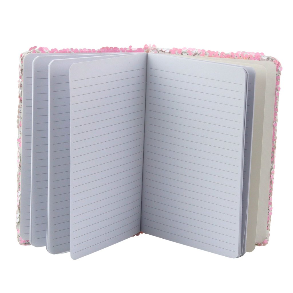 Tento mimořádný poznámkový blok je kombinací funkčnosti a magického designu, který okouzlí na první pohled Obal je pokryt vrstvou pohyblivých, třpytivých flitrů v růžové barvě, pod nimiž se skrývá barevný obrázek jednorožce s květinovou ozdobou