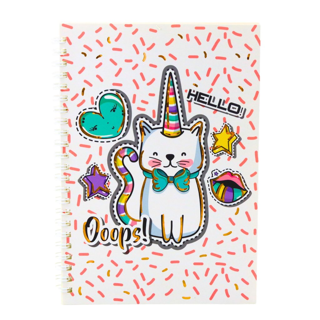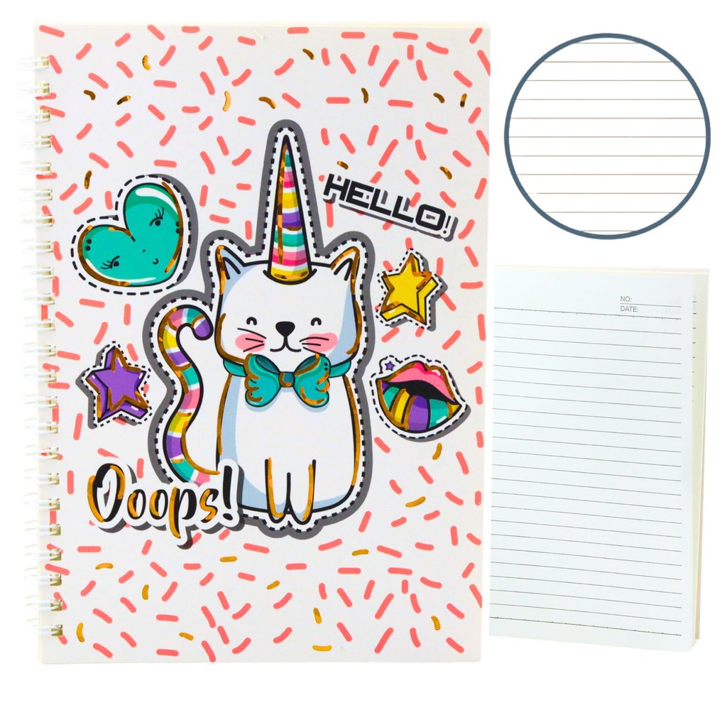 Poznámkový sešit s motivem kočka jednorožec je skvělou volbou pro děti a mládež, které milují veselé, pohádkové vzory Obálka ve světlých barvách upoutá pozornost detaily