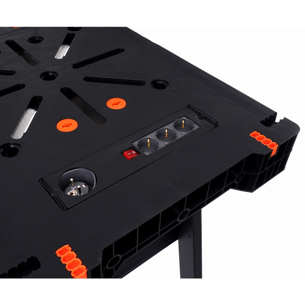 Skládací pracovní stůl KD10746 je tady, aby vám usnadnil život! Mobilní design umožňuje snadné přemisťování a odolná konstrukce z plastu zaručí dlouhou životnost. Ideální pro každého, kdo potřebuje spolehlivý pracovní prostor s maximálním zatížením 500 kg. Výhodou jsou i praktické zásuvky na uložení nářadí. Zabaleno s přenosným stolem, manuálem a 12měsíční zárukou.