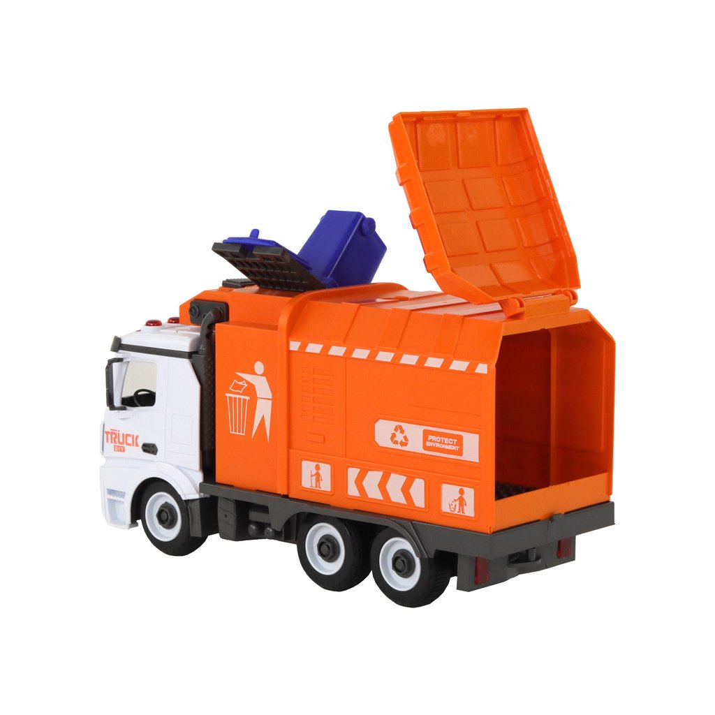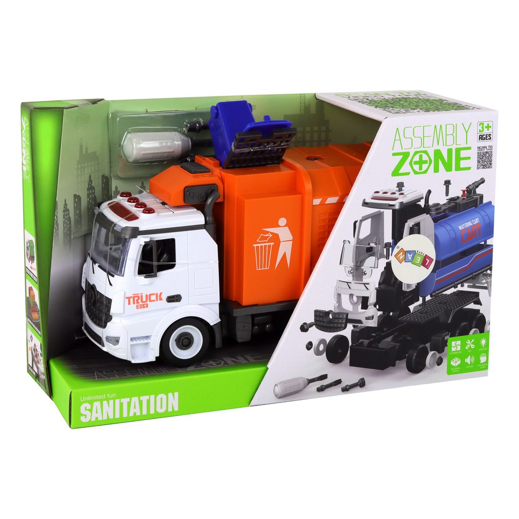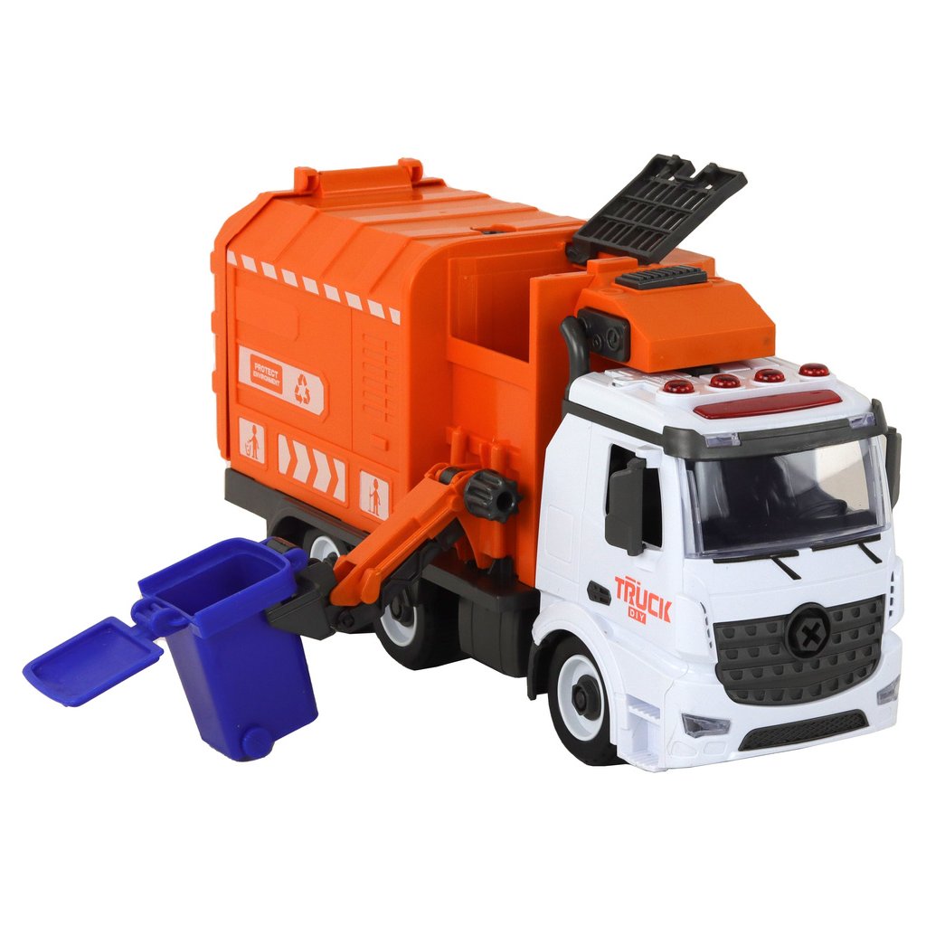 - Popelářské auto Sorter Segregacja DIY sada Šroubovák Zvuk Popelářské auto je v oranžovo-bílé barvě a přesně kopíruje vzhled skutečného popelářského auta