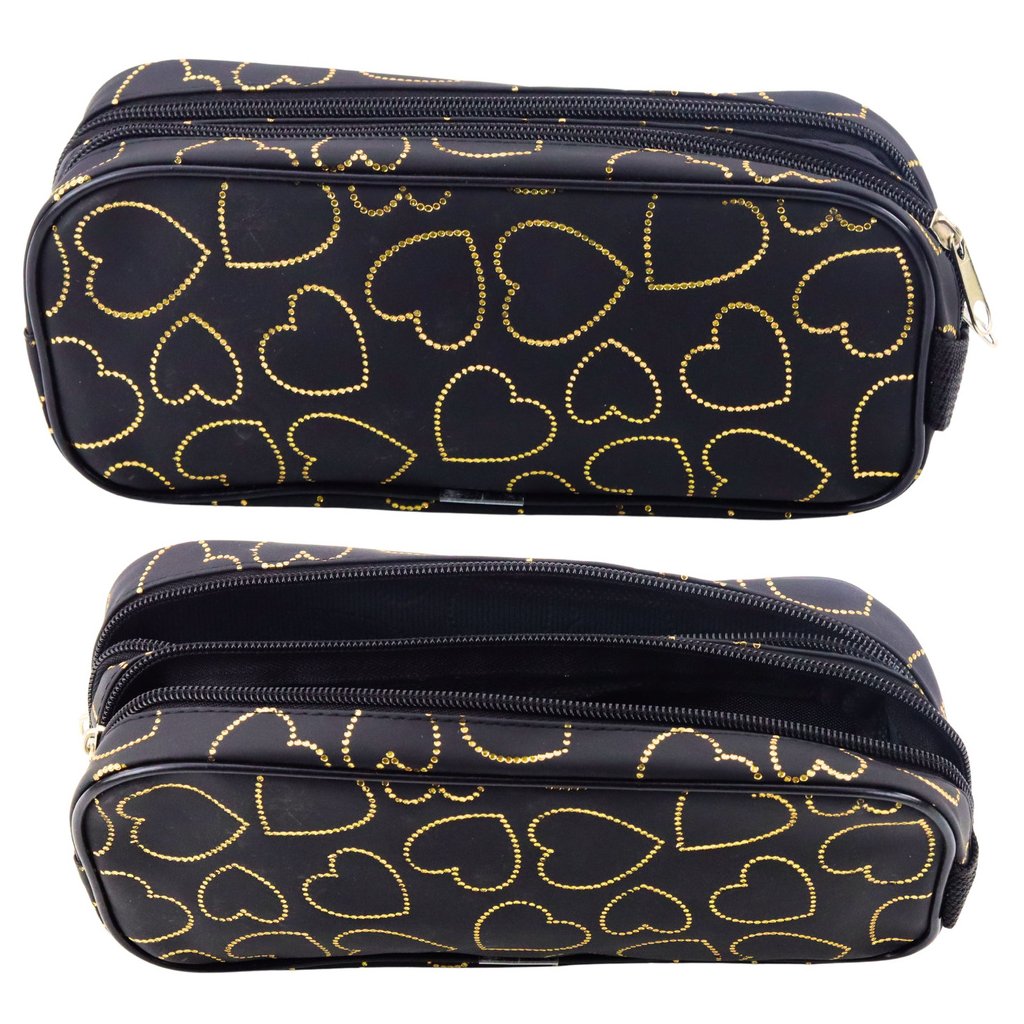- Tento dvoukapsový penál v elegantní černé barvě se zlatými srdíčky se stane nepostradatelným společníkem každého studenta
