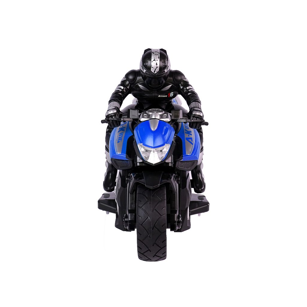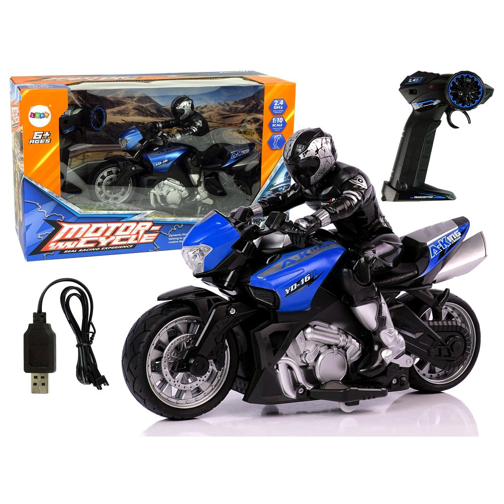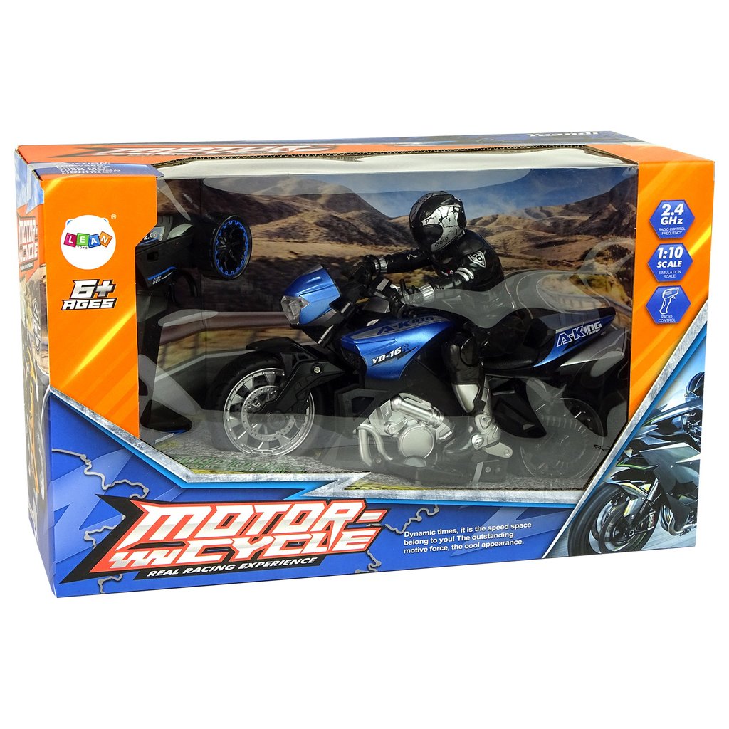 Sportovní R/C Motorka s frekvencí 2,4 GHz, dosahující až 35 metrů, v měřítku 1:10 a v jezdivé modré barvě je snem každého fanouška motoristické zábavy. Tato rychlá motorka ohromuje nejen děti, ale i dospělé a přináší vzrušení z extrémní jízdy přímo do vašeho domova. Díky pohodlnému, bezdrátovému ovladači je možné soutěžit se svými přáteli bez jakéhokoliv rušení. Ovládání směrů je jednoduché a umožňuje pohyb vpřed, vzad a do stran.