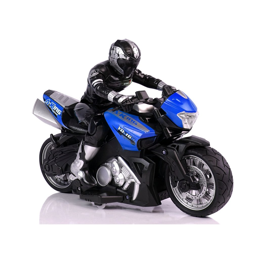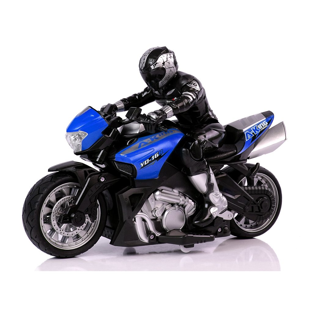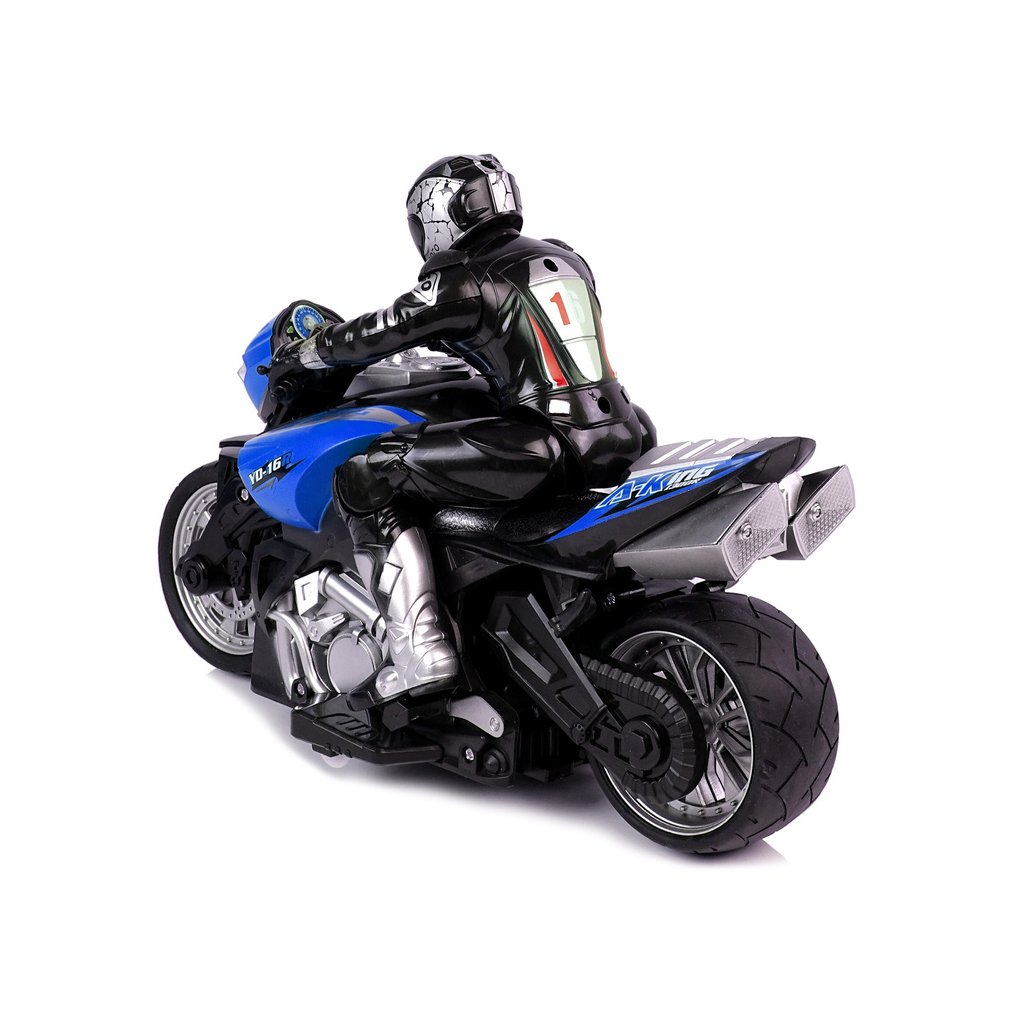 Sportovní R/C Motorka s frekvencí 2,4 GHz, dosahující až 35 metrů, v měřítku 1:10 a v jezdivé modré barvě je snem každého fanouška motoristické zábavy. Tato rychlá motorka ohromuje nejen děti, ale i dospělé a přináší vzrušení z extrémní jízdy přímo do vašeho domova. Díky pohodlnému, bezdrátovému ovladači je možné soutěžit se svými přáteli bez jakéhokoliv rušení. Ovládání směrů je jednoduché a umožňuje pohyb vpřed, vzad a do stran.